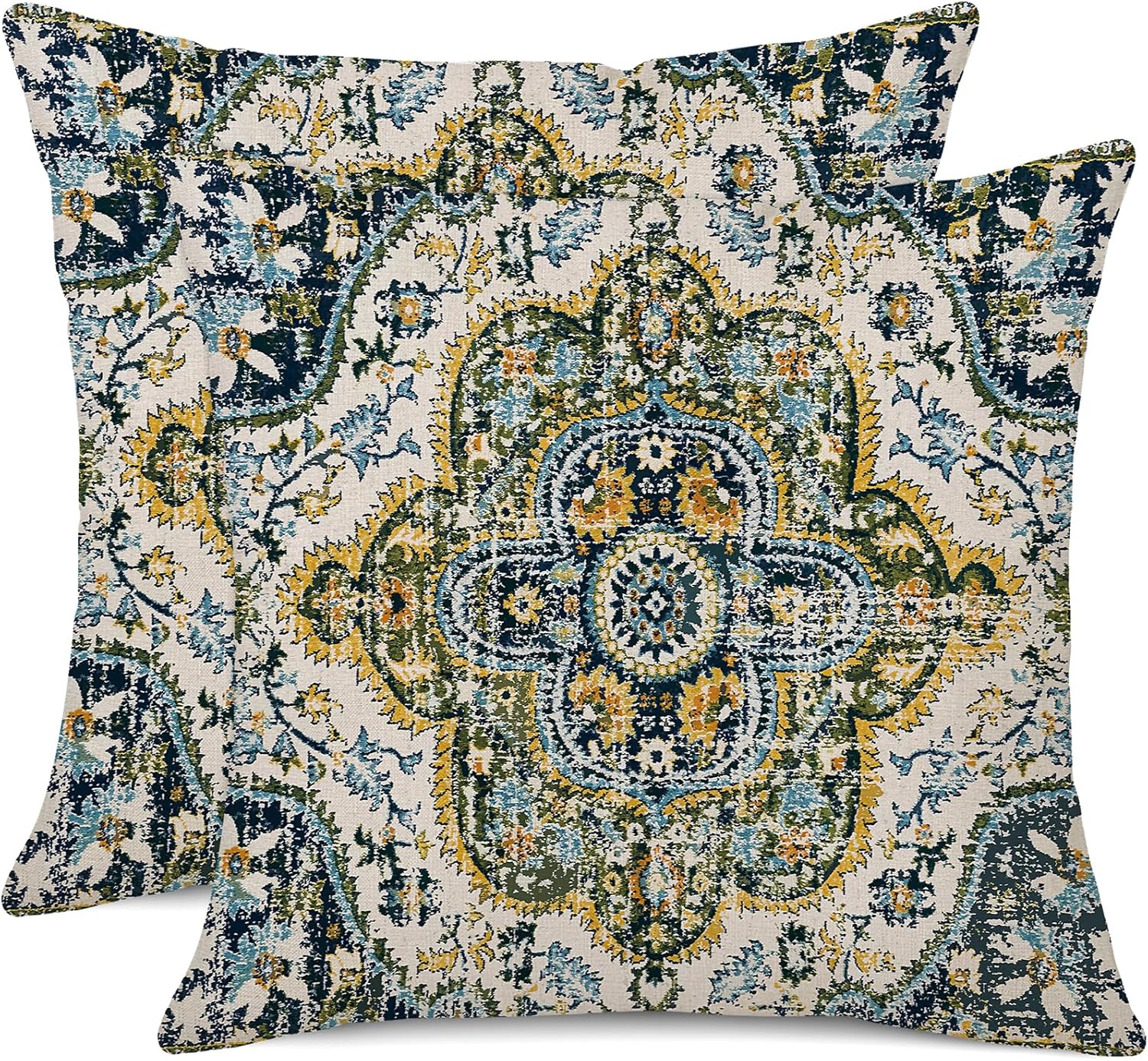 • 【Unique Design】:Unique bohemian carpet vintage floral pillowcase,The printed pattern is only available on front side, back is linen beige color without any printing. It can help you quickly change decorations, refresh your living space, and mix and match with other decorative pillows or holiday decorations. It's also a nice gift for family and friends