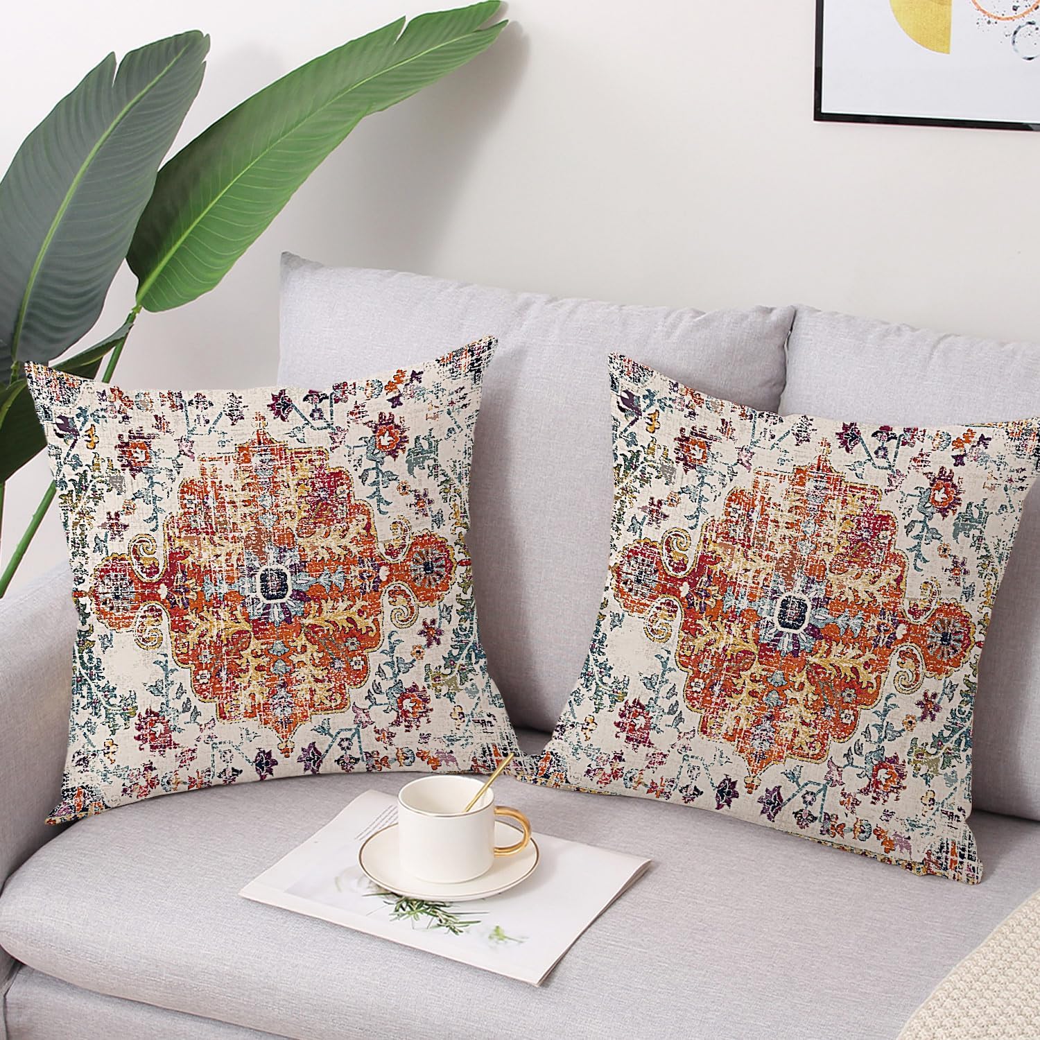 • 【Unique Design】:Unique bohemian carpet vintage floral pillowcase,The printed pattern is only available on front side, back is linen beige color without any printing. It can help you quickly change decorations, refresh your living space, and mix and match with other decorative pillows or holiday decorations. It's also a nice gift for family and friends