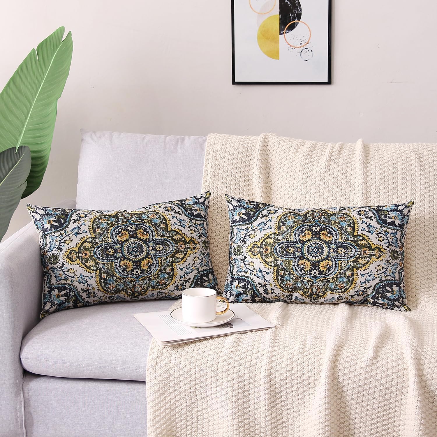 Outdoor Waterproof Pillow Covers 12X20 Set of 2 Bohemian Vintage Carpet Pattern Pillow Covers Green Blue Ethnic Design Decorative Farmhouse Cushion Case for Couch Garden