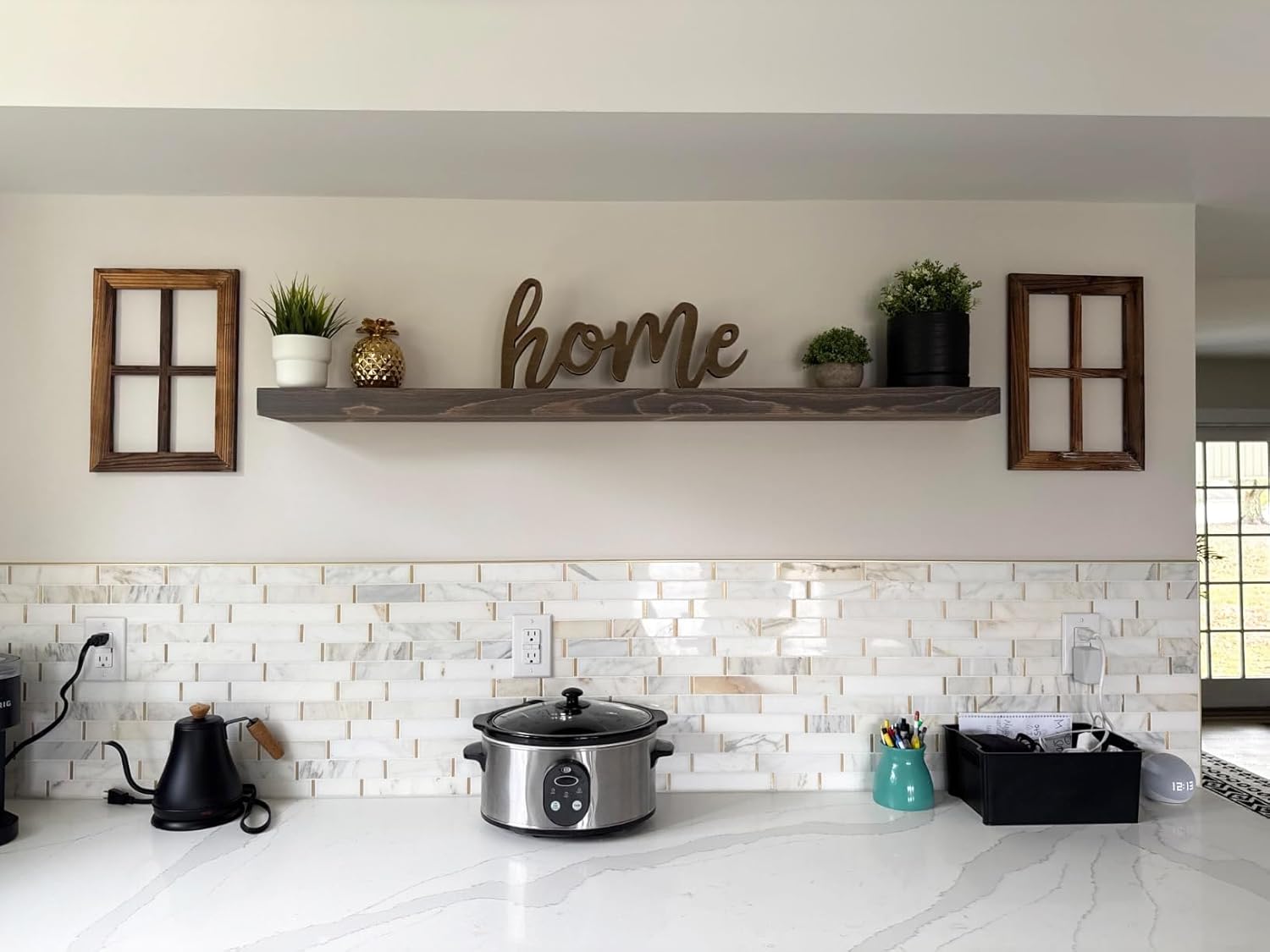 • Elevate Your Space with Rustic Charm: Transform your living room or any space with our large floating shelves for wall. These 48 inch floating shelf beauties, crafted from natural wood, add a touch of rustic warmth and provide ample display space for your cherished items.
