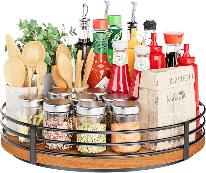 • Space-Saving Turntables: This wood lazy susan organizer measures 10 inch,providing more storage capacity in your deep cabinets,pantry shelves and cluttered corner countertop , Making the most use of the limited space in your home to keep things neat and organized.