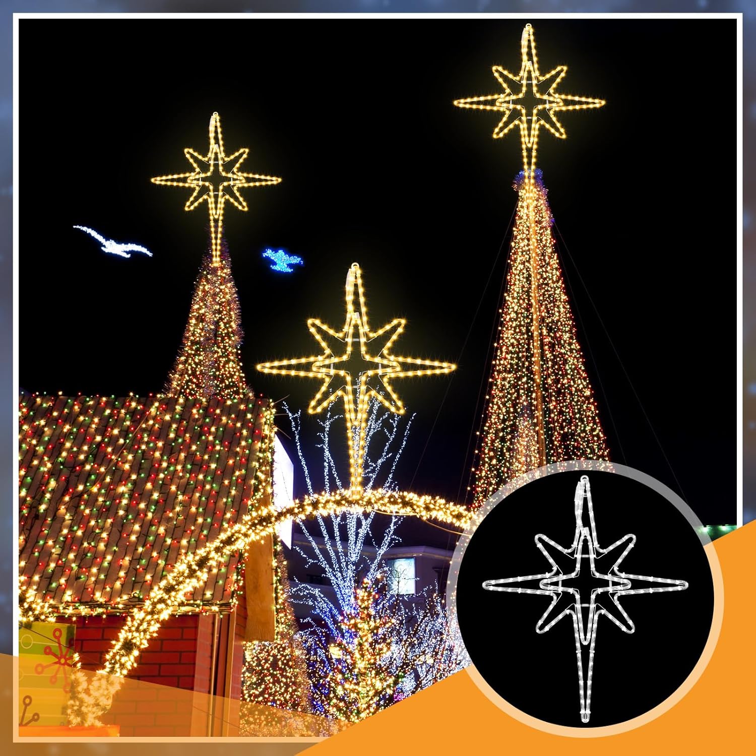 • Reliable Iron Frame: the outside Christmas star adopts a quality iron frame and bright LED beads, a stunning design that adds a touch of elegance to most spaces, bringing a different kind of feeling to the family
