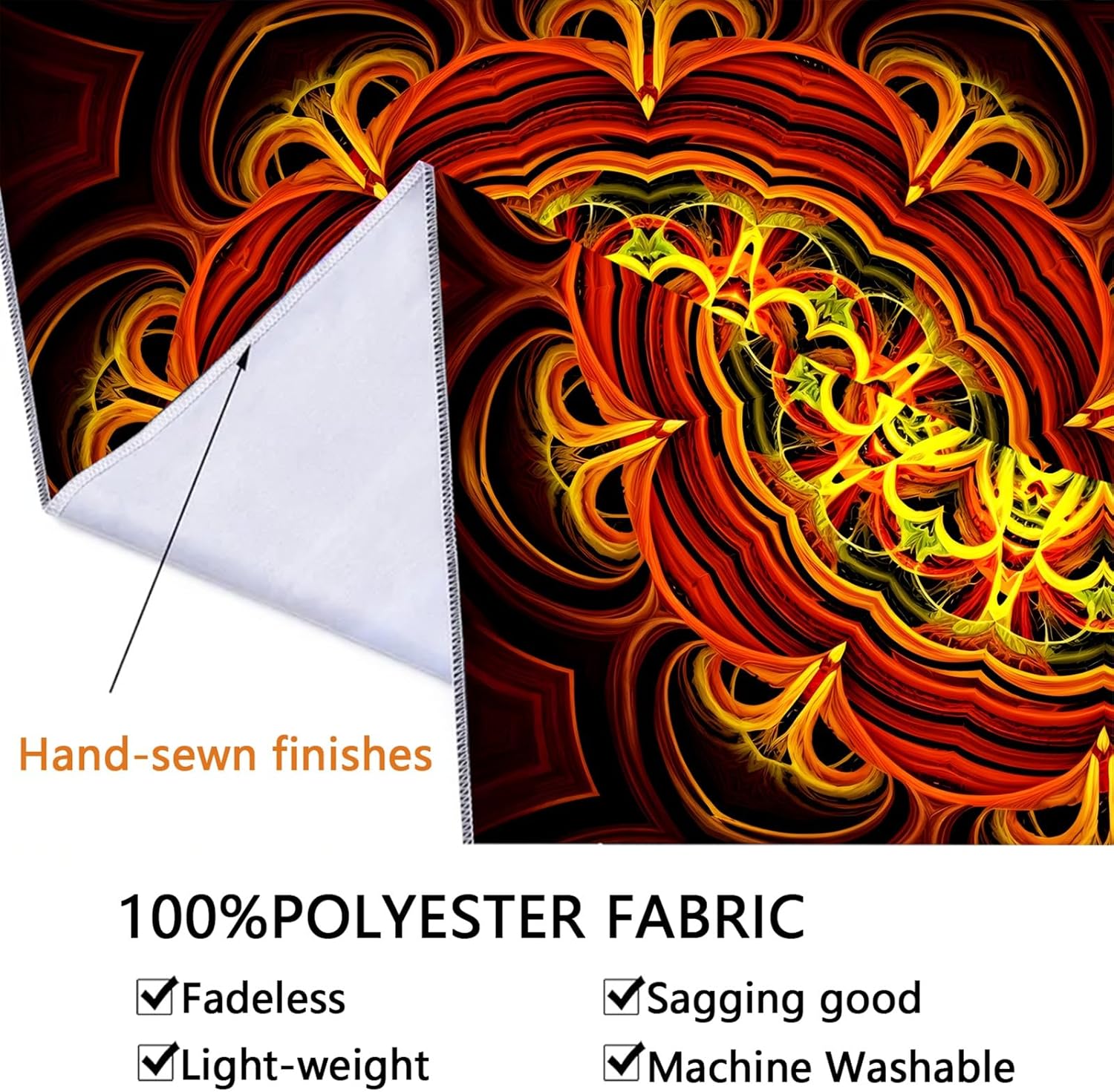 Blacklight Mandala Tapestry Wall Hanging, Psychedelic Black Light Posters for Adults and Teens, UV Reactive Aesthetic Golden Art for Bedroom (60 x 50 Inches)
