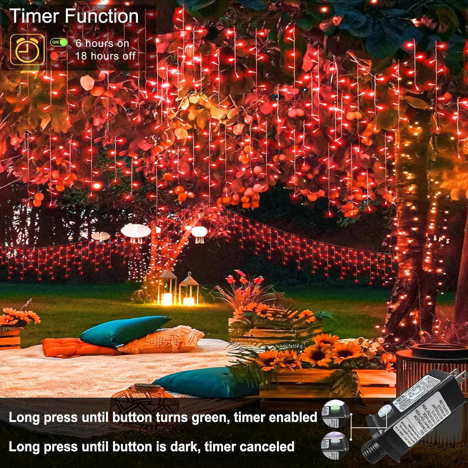 • 【Memory and Timer Function】The icicle lights could recover from the previous setting mode when you restart, no need to reset the mode every time. Press and hold the button on the adapter for 3 seconds until the green light on, then the timer function start, 6 hours on 18 hours off. This smart and convenient icicle string lights is the best choice for your holiday decoration.