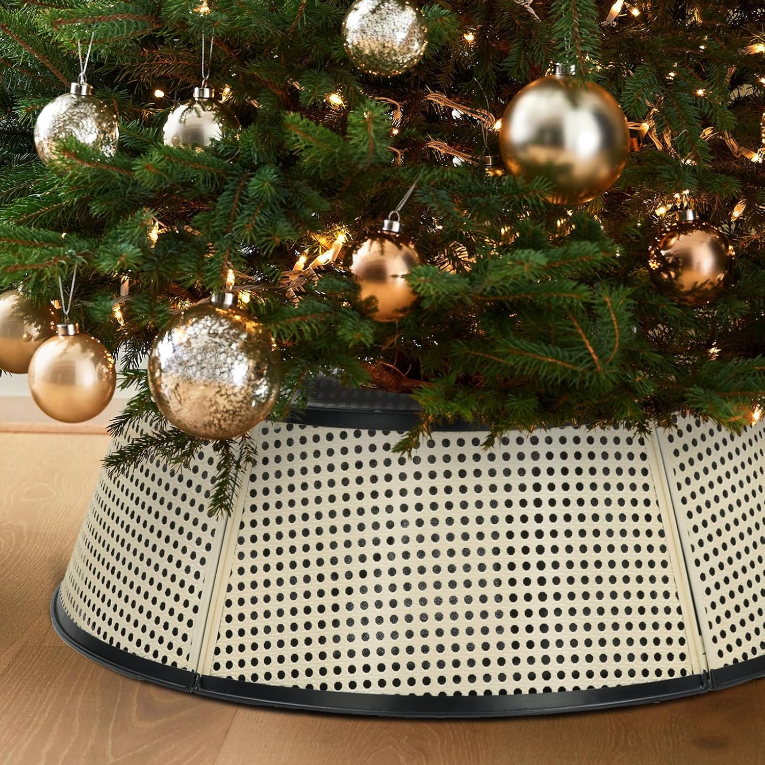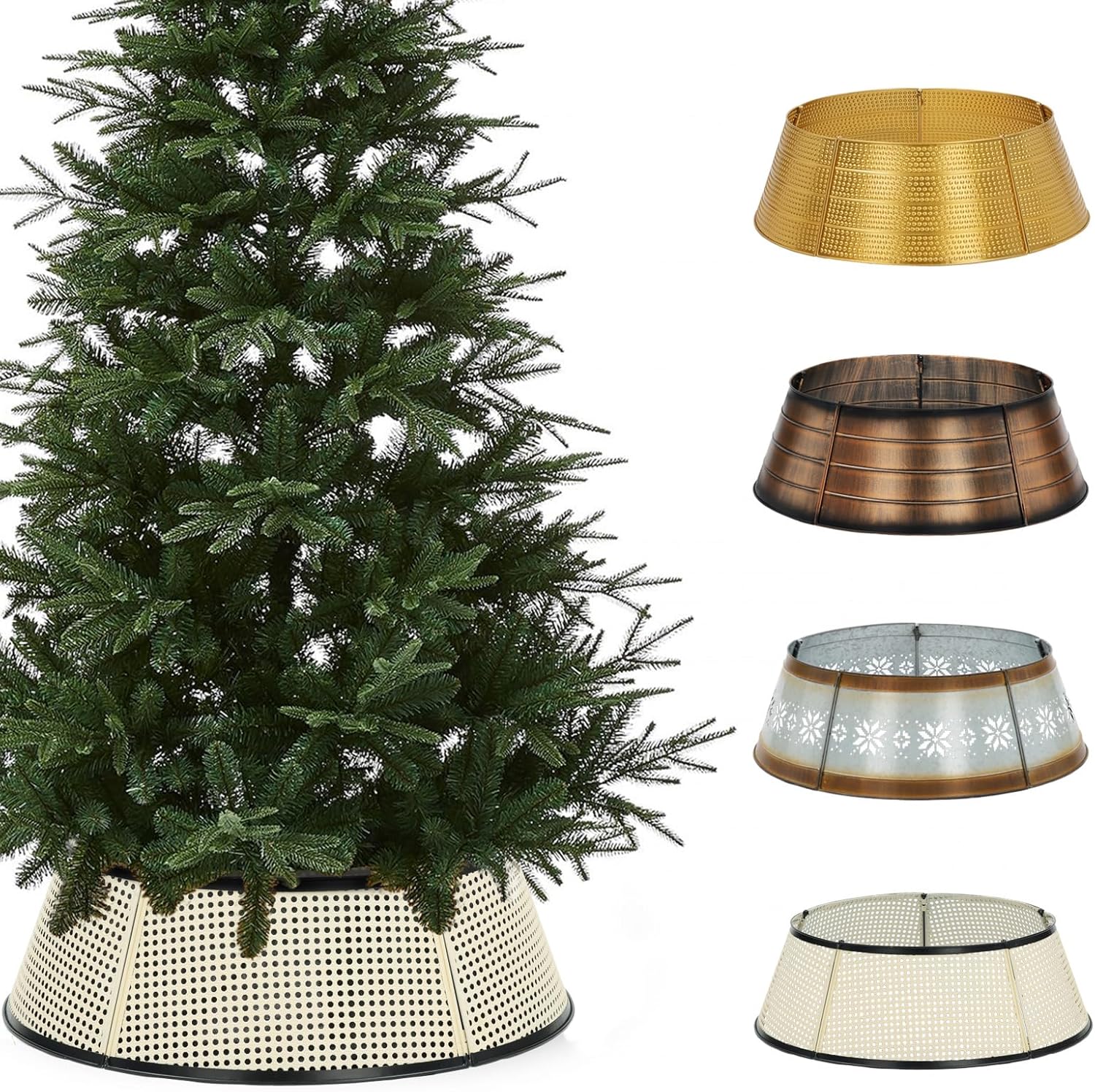 • Unique appearance: The tree collar design goes great with the glamorous cream-color look while protecting your tree base from damage and adding ornamental. hollow-carved design creates a particular festive accent for your Christmas tree this holiday