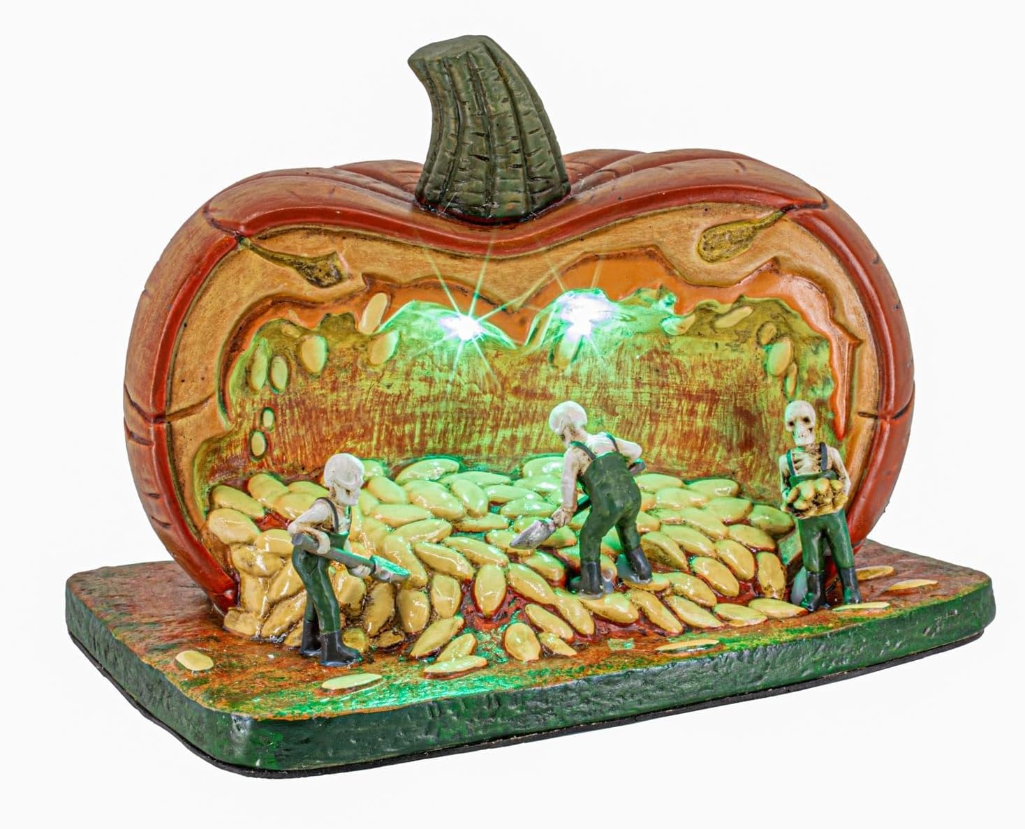 Gourd Gathering Ghouls Pumpkin Theme Spooky Halloween Village Porcelain Colorful LED Lights 7.75" x 6" x 5.75"