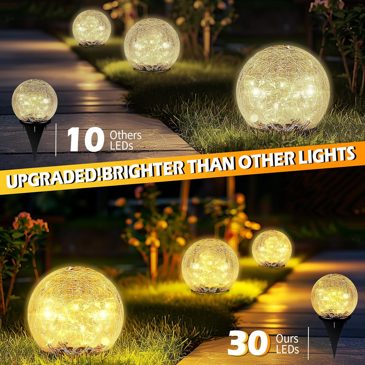 Garden Solar Ball Lights Outdoor Waterproof, 30 LED Cracked Glass Globe Solar Power Ground Lights for Path Yard Patio Lawn, Christmas Decoration Landscape Warm White(2 Pack 3.9'')