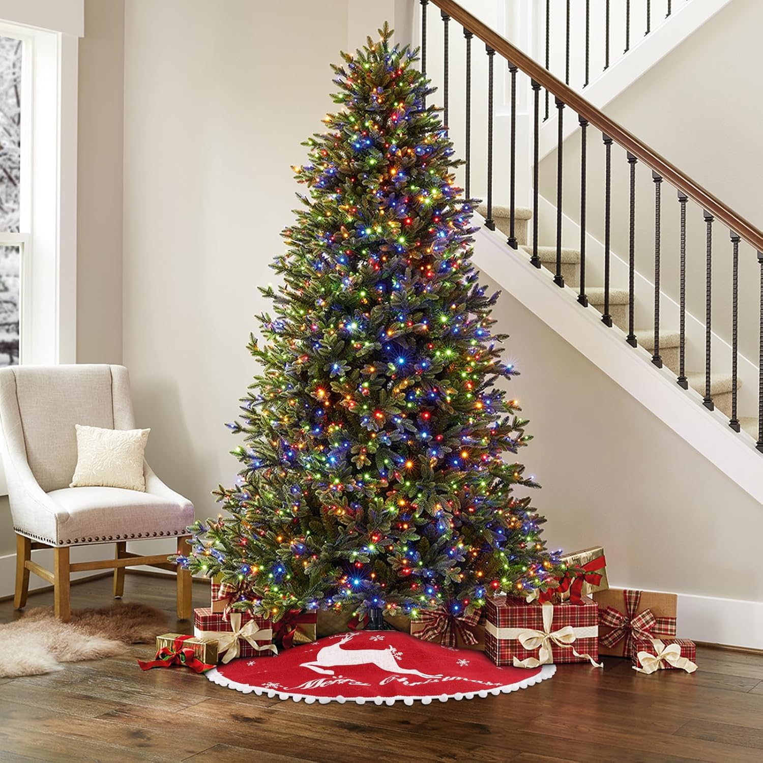 • Merry Christmas Tree Skirt:Our Christmas tree skirts is printed with elk and various sizes of snow patterns, as well as the words "Merry Christmas." The edges are adorned with small, fluffy balls, adding a festive touch to your Christmas tree. This 24-inch tree skirt is perfectly sized for most Christmas trees perfectly. Before making a purchase, please measure the diameter of your tree to ensure a perfect fit