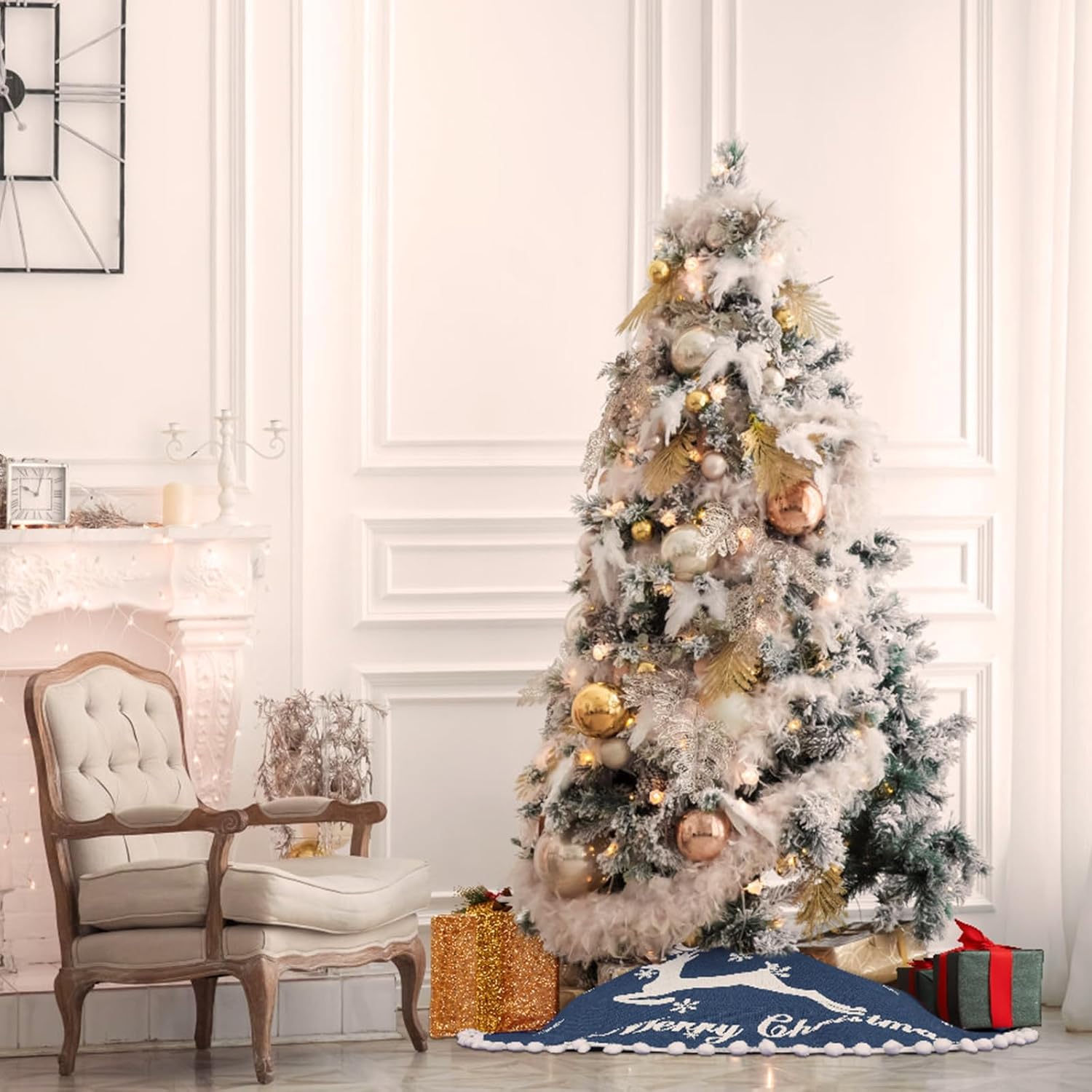 • Merry Christmas Tree Skirts:Our xmas tree skirt is printed with elk and various sizes of snow patterns, as well as the words "Merry Christmas." The edges are adorned with small, fluffy balls, adding a festive touch to your Christmas tree. This 48-inch tree skirt is perfectly sized for most Christmas trees perfectly. Before making a purchase, please measure the diameter of your tree to ensure a perfect fit