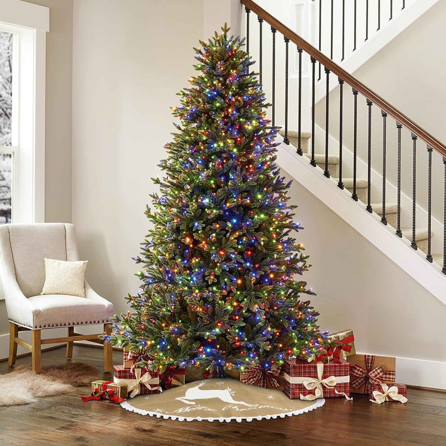 • Burlap Material Tree Skirt:This rustic tree skirt Christmas is made from natural burlap. The color has been safely treated to present a classic Christmas linen color. This fabric makes the Christmas tree skirt tough, durable, and environmentally friendly, and it will not pill. The tree skirt can be reused in subsequent years