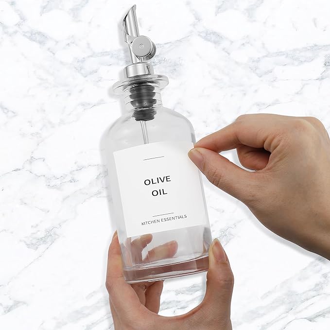 • PVC Sticker Labels Included — Enjoy 55 waterproof and oil proof labels made from PVC that include everything from cooking oils to sauces, wines, coffee syrups and more. Customize your dispensers and fill with your favorite cooking essentials.