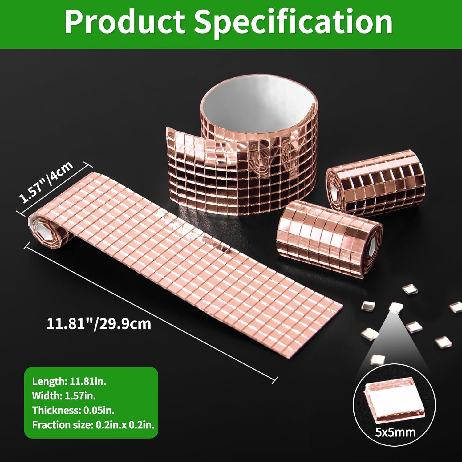 LONGKING 3776 Pieces Self-Adhesive Mirror Tiles, Square Mirror Stickers Mosaic Tiles, Glass DIY Craft Decoration, Disco Ball Tiles(Rose Gold)