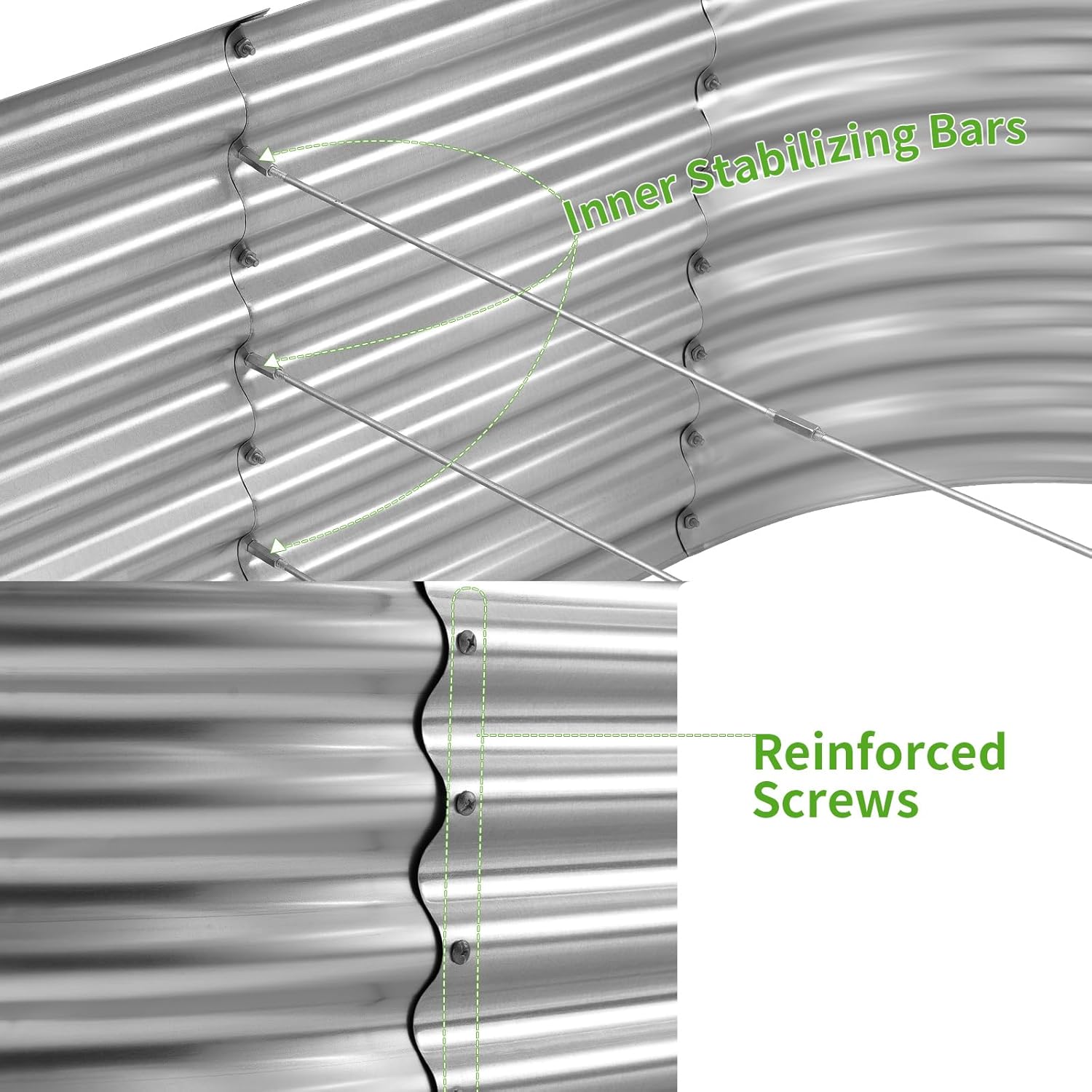 • Durable materials: The flower bed adopts oval design and is made of galvanized metal, the product surface is coated with environmentally friendly coating, which has good rust and corrosion resistance and can be used for a long time.