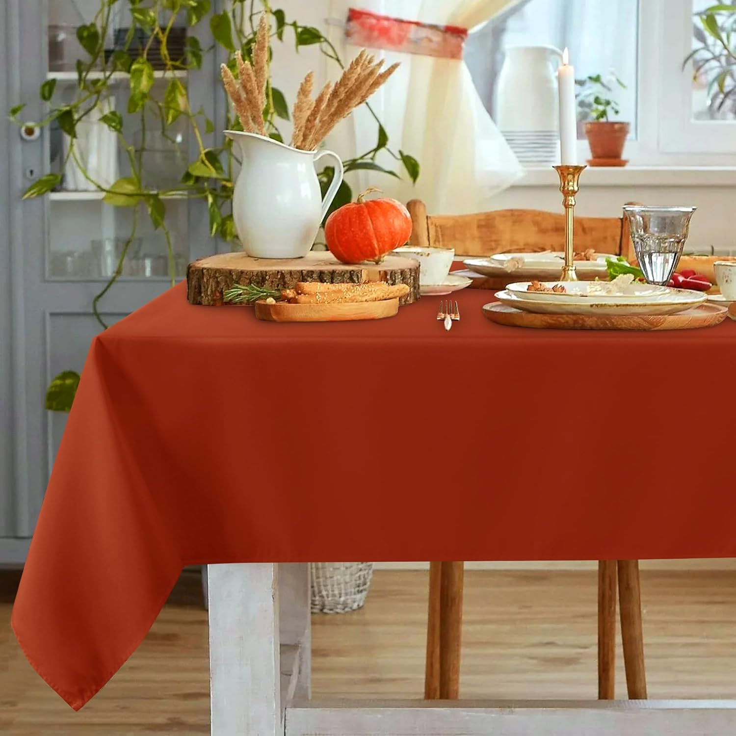 sancua Rectangle Tablecloth 60 x 120 Inch Burnt Orange, Stain and Wrinkle Resistant Washable Fabric Fall Table Cloth, Thanksgiving Polyester Table Cover for Dining Parties Rust Pumpkin Orange