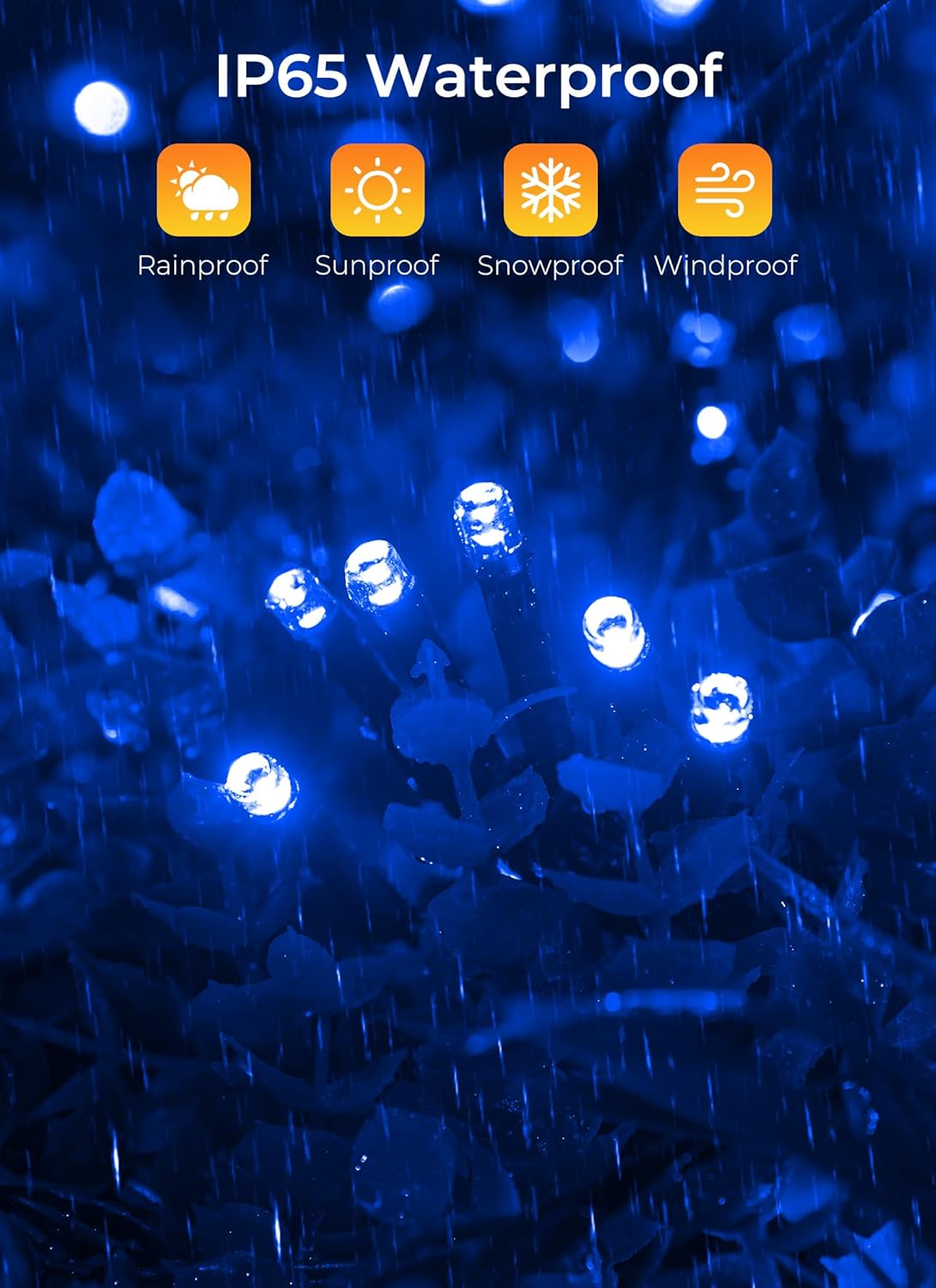2-Pack 400LED 170FT Total Solar Outdoor Lights IP65 Waterproof Solar Powered Lights with 8 Lighting Modes for Party Garden Yard Home Holiday Tree Decoration Lighting,Blue