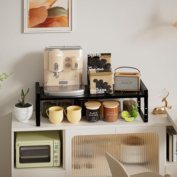 • ⭐【Flexible retractable design (Expandable & Adjustable)】This kitchen shelf uses a retractable design, which can be freely adjusted according to the size of the kitchen space and personal needs. Whether it is a narrow corner or a spacious storage room, it can be easily adapted to make the most of every inch of space.(10.1"D x 16.54"W~26.38"W x 6.22"H)