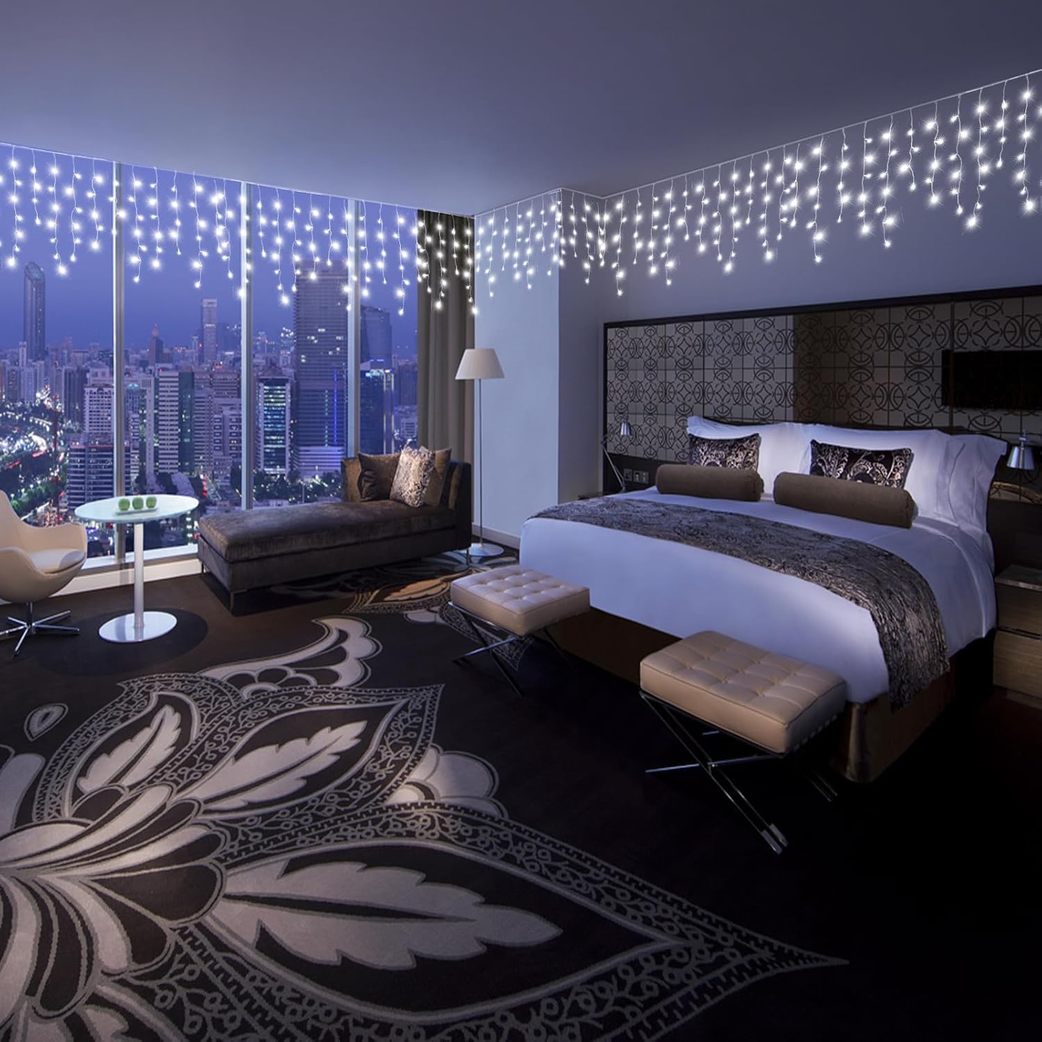 • 【Convenient Timer Function】Activate the timer by pressing the adapter button for 3 seconds. The lights will automatically turn on for 6 hours and off for 18 hours, saving you the hassle of manual operation. These indoor icicle lights can be easily draped or hung on outdoor roofs, yards, windows, patios, gardens, fences, or in indoor bedrooms, perfect for adding festive charm to every corner of your home.