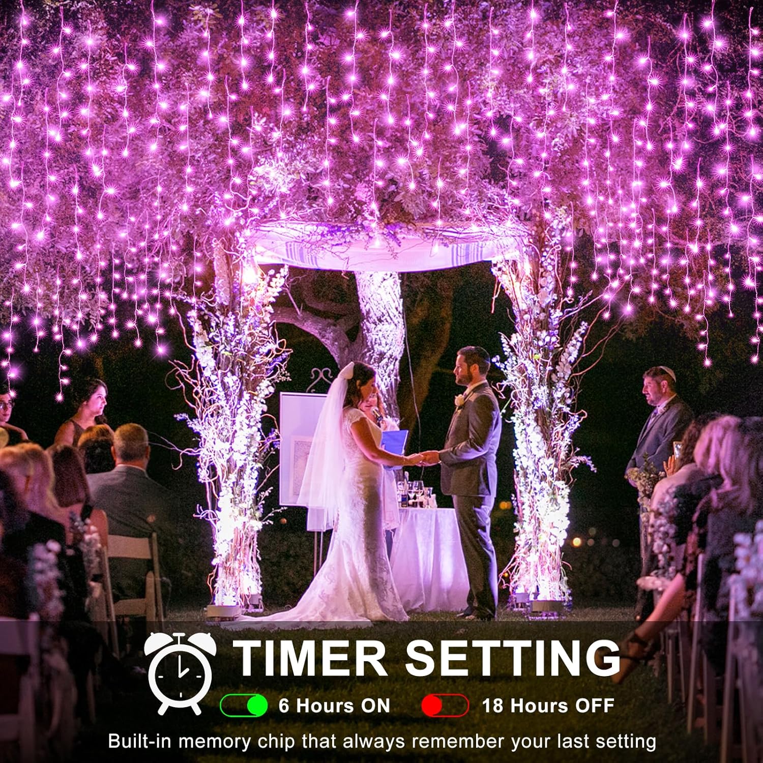 • 【Convenient Timer Function】Activate the timer by pressing the adapter button for 3 seconds. The lights will automatically turn on for 6 hours and off for 18 hours, saving you the hassle of manual operation. These indoor icicle lights can be easily draped or hung on outdoor roofs, yards, windows, patios, gardens, fences, or in indoor bedrooms, instantly transforming the space into a dreamy, romantic haven.