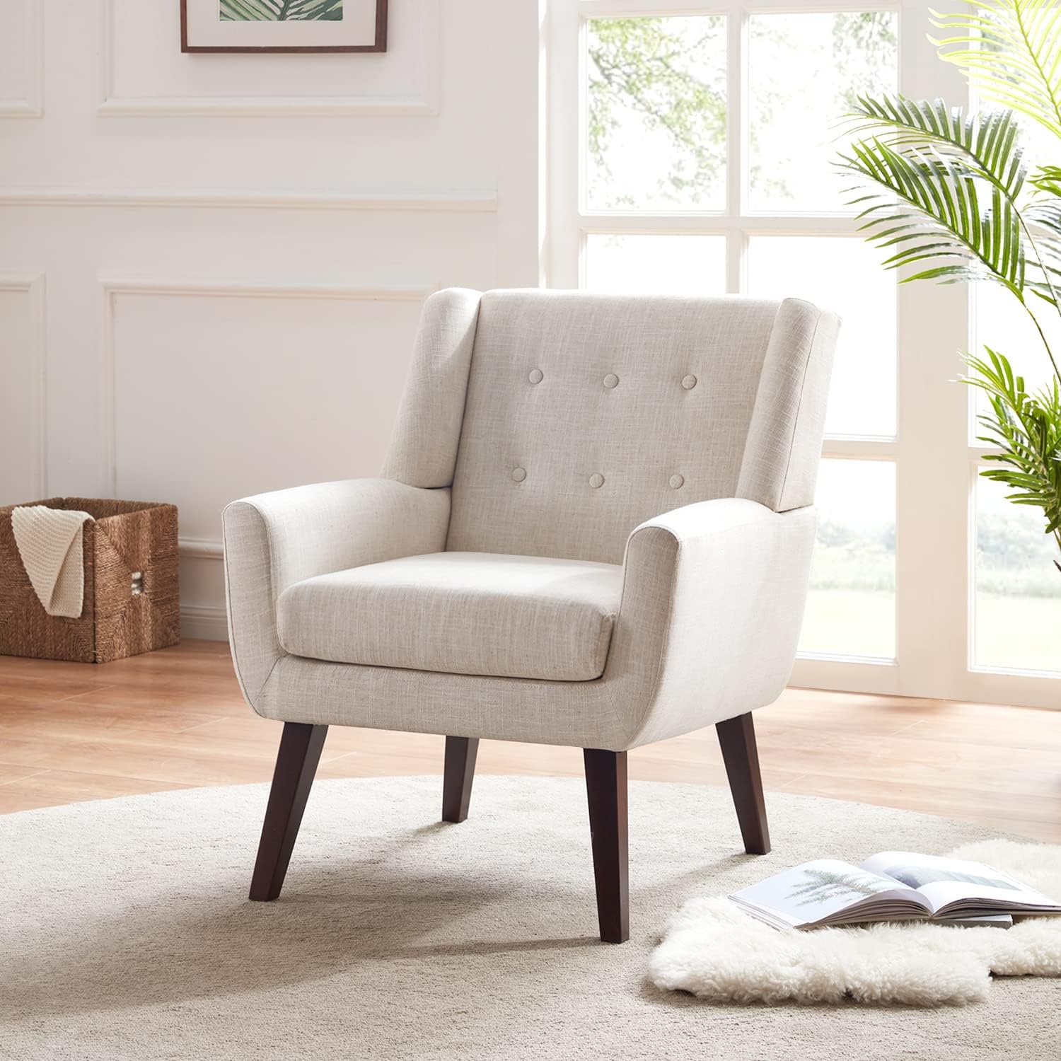 • Modern Comfort Experience: The cushion and backrest of this armchair are made of high-density and high-resilient native sponge, which can provide maximum comfort for you.Soft linen fabric foam padded cushions with enough width and depth to give you hours of comfortable sitting without sacrificing fashion and style
