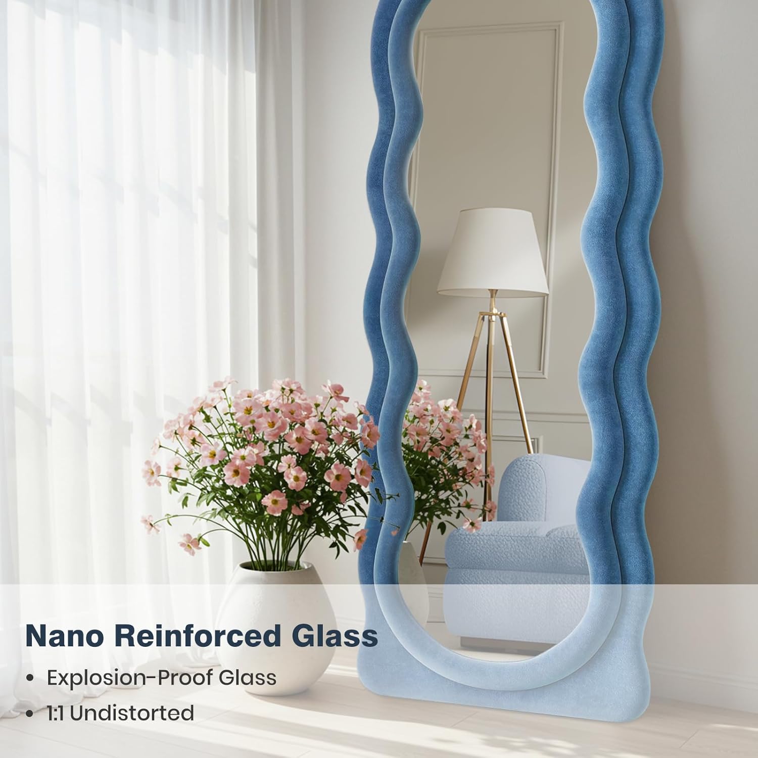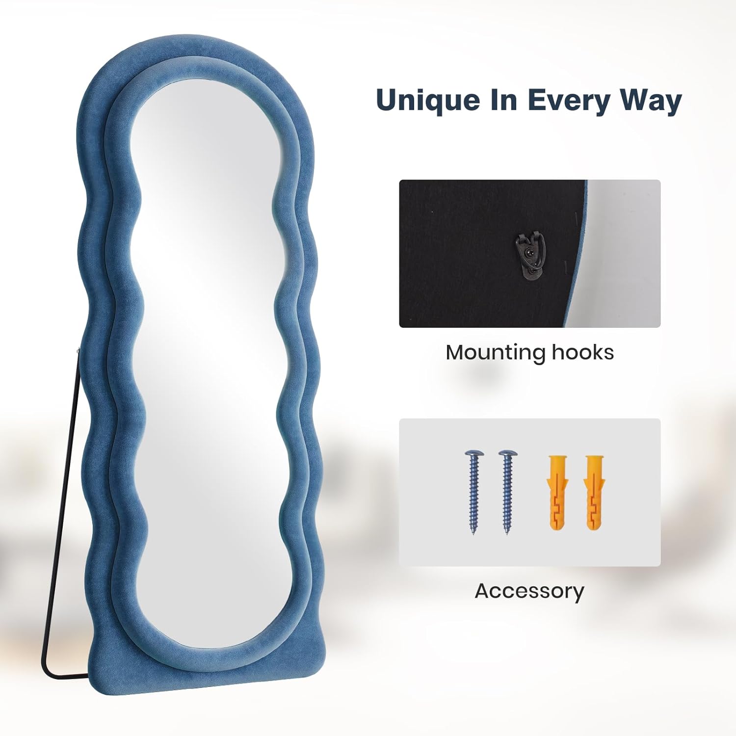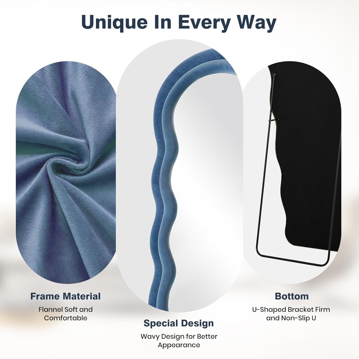 • Blue Flannel Irregular Wavy Frame Floor Mirror: The full length standing mirror features a modern style that can complement any type of room decor, adding a touch of elegance to your room. It will be a great wall decor art piece for your home. This full body mirror with sleek looking is also great for selfies or pictures in general