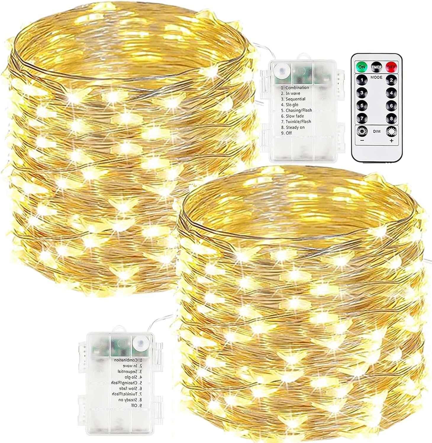 • Upgraded Christmas twinkle lights: Designed with ultra-bright LEDs and durable silver wire, these battery fairy lights are built to last and make an excellent choice for decorating bedrooms, centerpieces, balconies, and porches. Each set includes 2 strands of lights and 1 remotes, each 66ft long with 200 LEDs, powered by 3 AA batteries (not included)