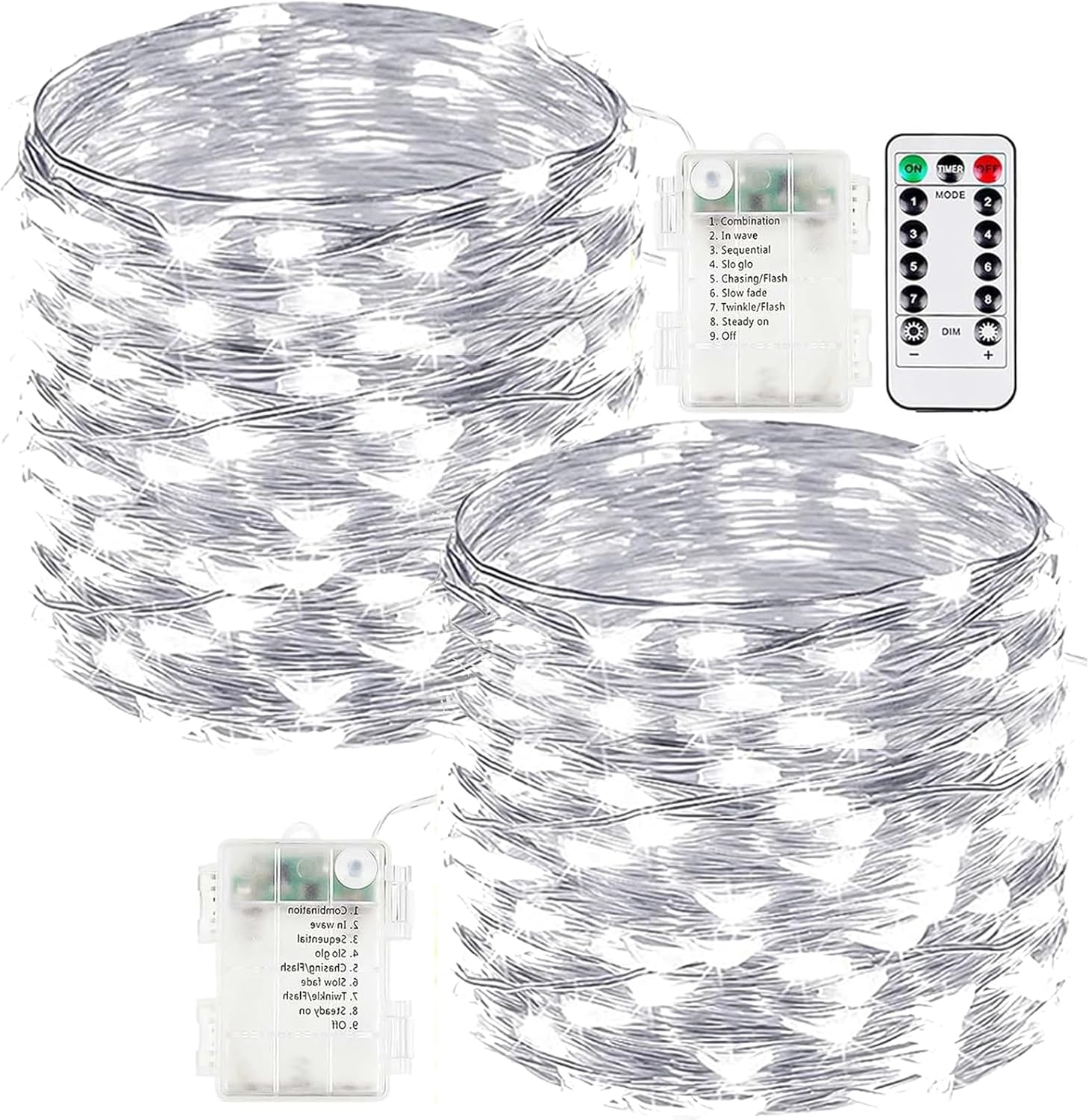• Upgraded Christmas twinkle lights: Designed with ultra-bright LEDs and durable silver wire, these battery fairy lights are built to last and make an excellent choice for decorating bedrooms, centerpieces, balconies, and porches. Each set includes 2 strands of lights and 1 remotes, each 66ft long with 200 LEDs, powered by 3 AA batteries (not included)