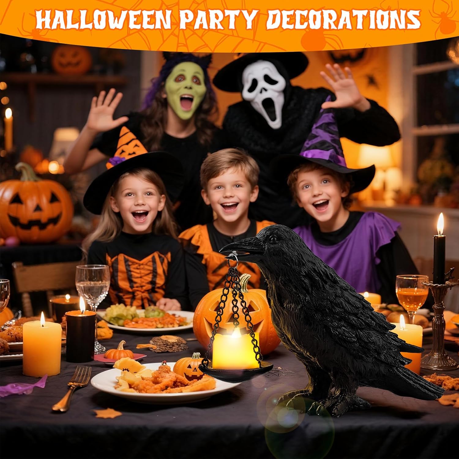 • Gothic Halloween Decor: Enhance your Halloween ambiance with the eerie Crow Lamp, featuring a crow holding a black plate that can hold tealights or fake candles. This unique piece adds a touch of mystery and sophistication to your Halloween decor.