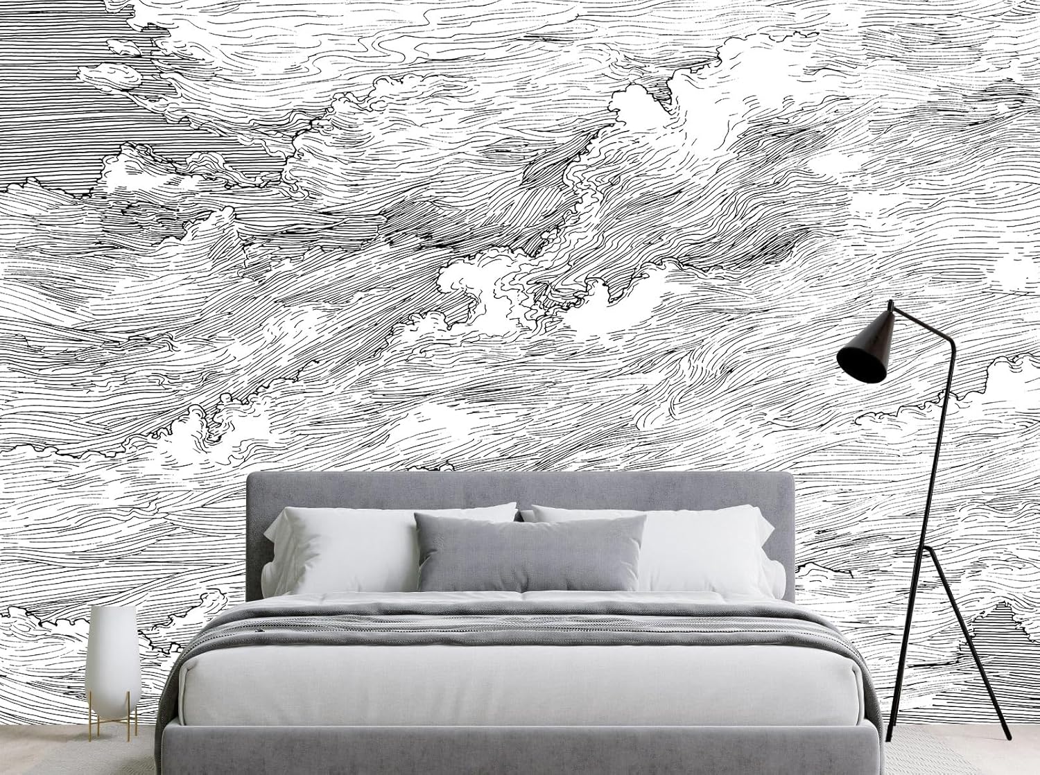 • MATERIAL - Black and white cloud murals for walls is made of premium silk material. Ecological printing with lightfast, UV resistant lasting colors. Durable and waterproof, fadeless and odorless, non-toxic and eco-friendly.