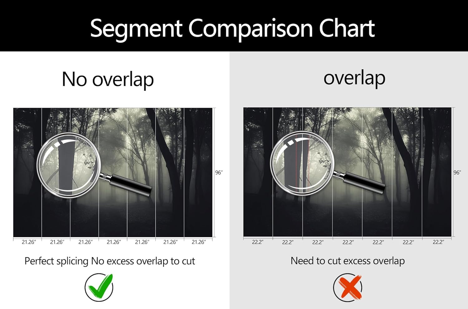 • Mural Size: The total size of this mural wallpaper is 149" x 96" / 378CM x 244CM (W x H), cut into 7 pieces, each measuring 21.26" x 96", for easy installation.