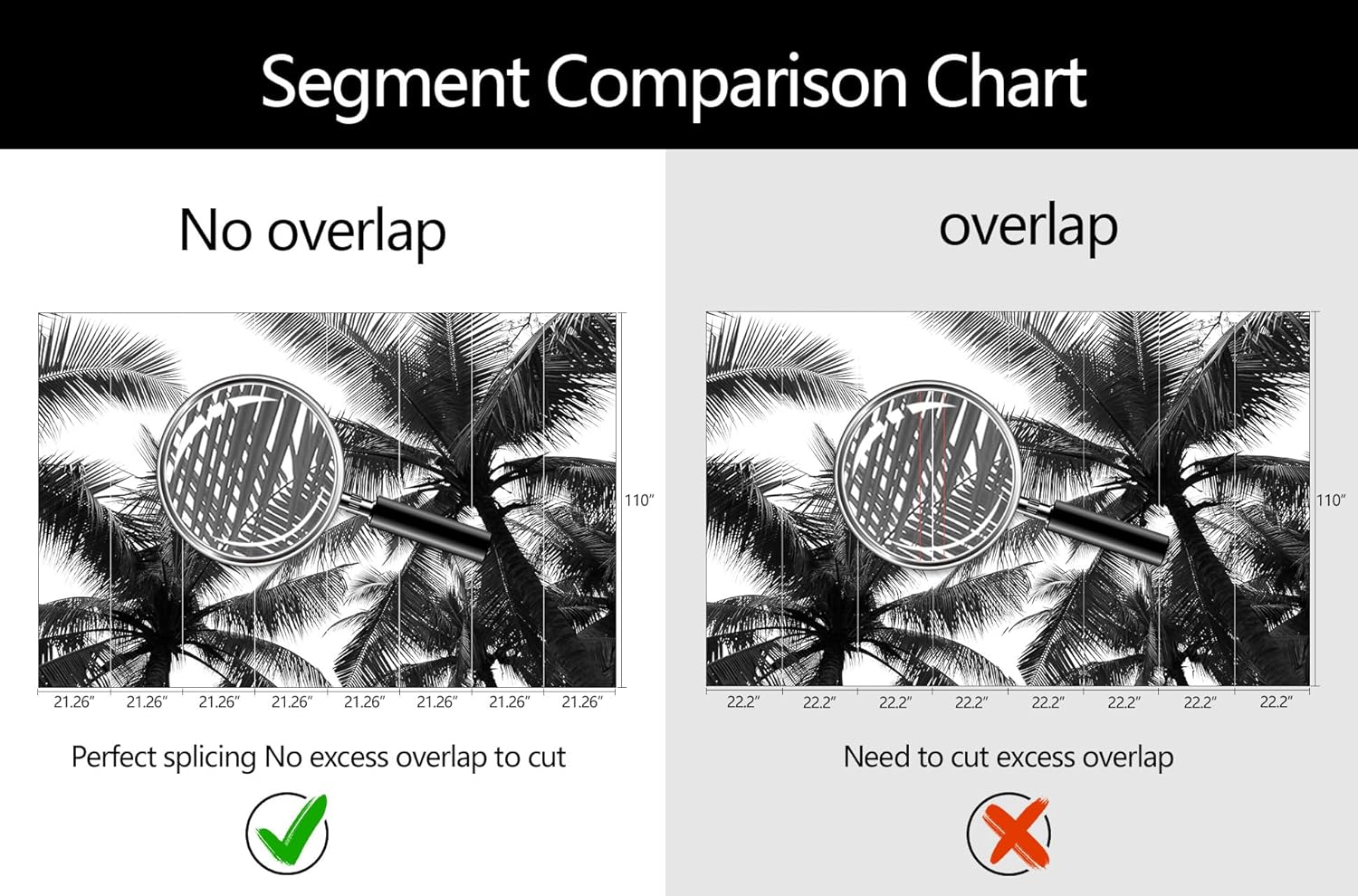 • Mural Size: The total size of this mural wallpaper is 170" x 110" / 432CM x 280CM (W x H), cut into 8 pieces, each measuring 21.26" x 110", for easy installation.
