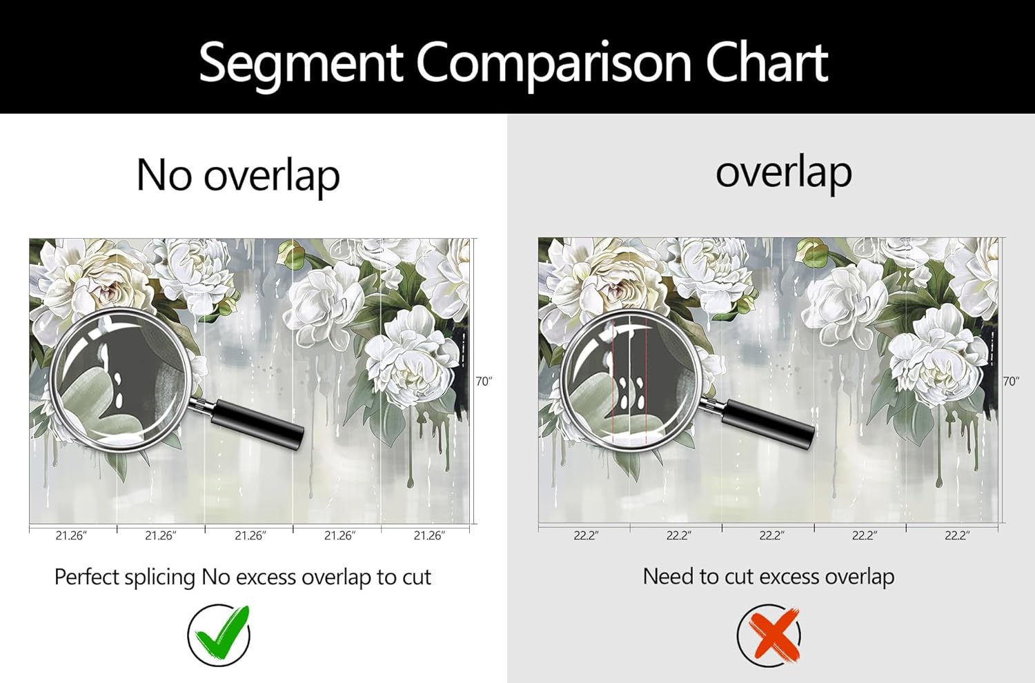 • Mural Size: The total size of this mural wallpaper is 106" x 70" / 270CM x 178CM (W x H), cut into 5 pieces, each measuring 21.26" x 70", for easy installation.