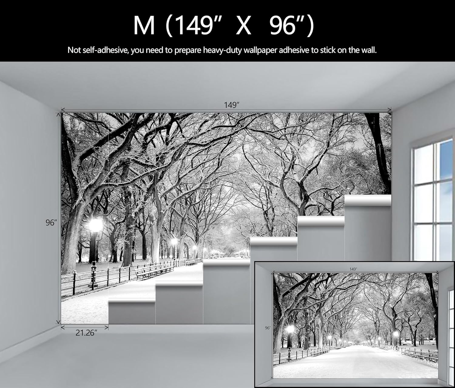 Beautiful 3D Snowy Forest Wallpaper Gray New York Park Landscape Wall Mural Living Room Bedroom (Not Peel and Stick)