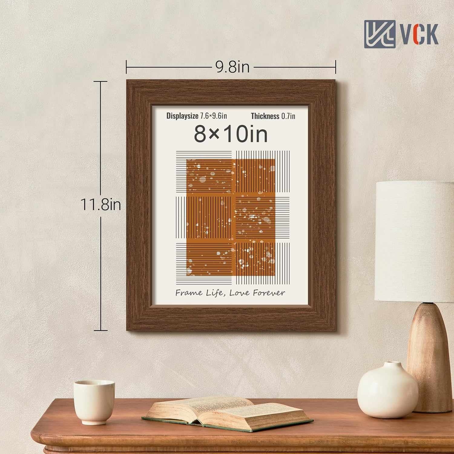 • Elegant Charm: VCK brown wood-grain picture frame. Drawing inspiration from Appalachian ancient forests, seamlessly blends modern minimalist design with natural aesthetics. This versatile addition enhances any decor, elevating the aesthetic value of your space