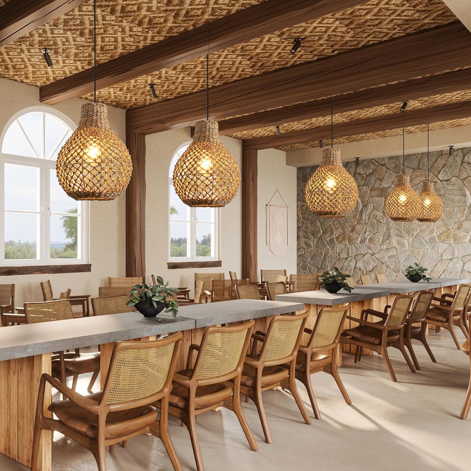 • Light bulb requirements: This rattan pendant light uses a US standard E26 lampholder up to 60W.Compatible with a wide range of E26 bulbs;LED incandescent CFL halogen (bulb not included)Wicker hand-woven pendant fixtures make it perfect for large spaces such as dining rooms and kitchen islands