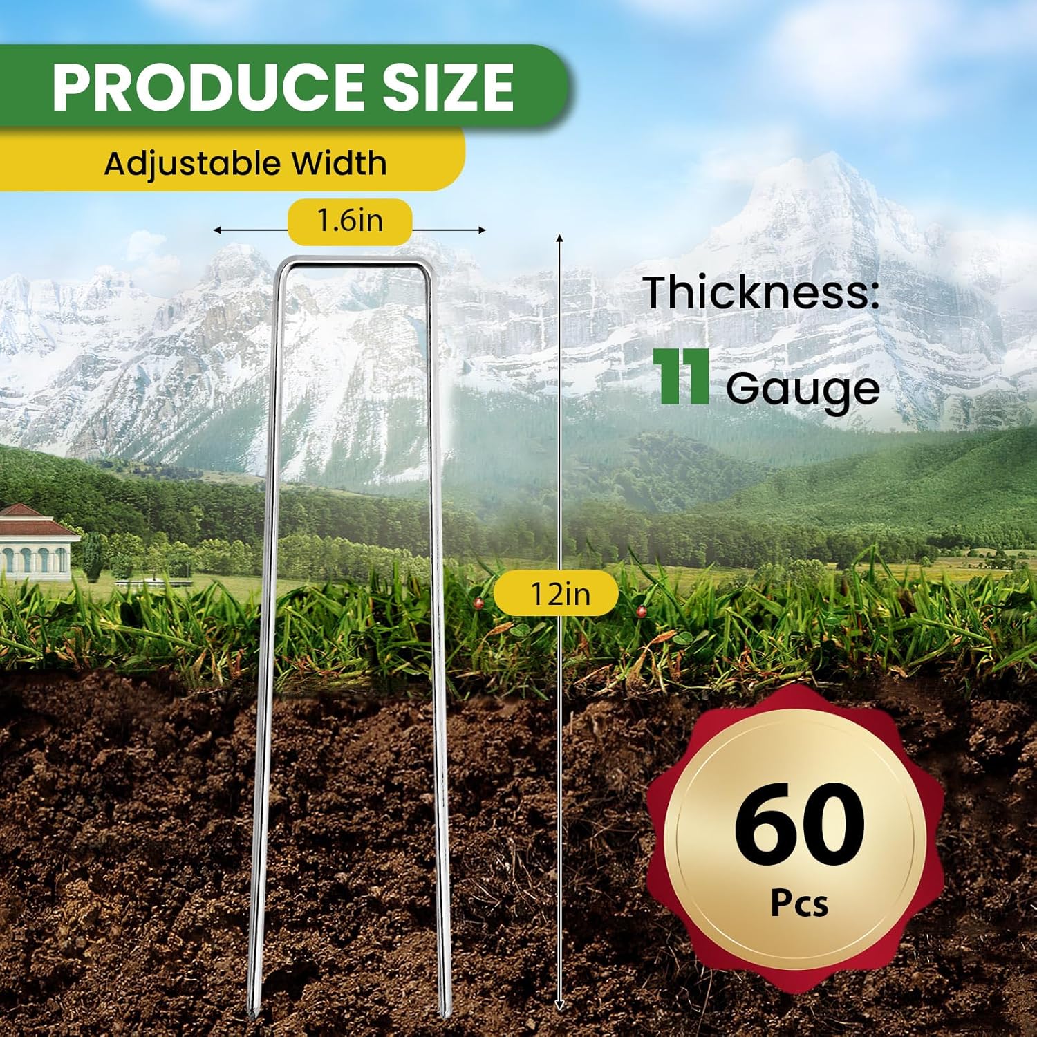 • Professional Grade Landscape Staples: Our set includes 60 garden ground stakes, each measuring 12 inches in length and 1.6 inch in width, to meet everyday outdoor needs