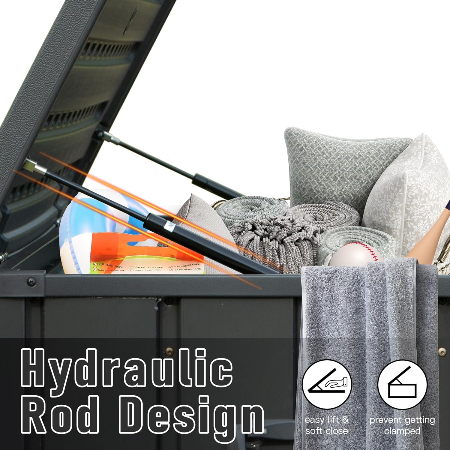 • 🌞【Humanized Hydraulic Pistons】: Easy lift and soft close mechanism allows the top completely open and shut smoothly with minimal effort-easy to use and no smashed fingers.