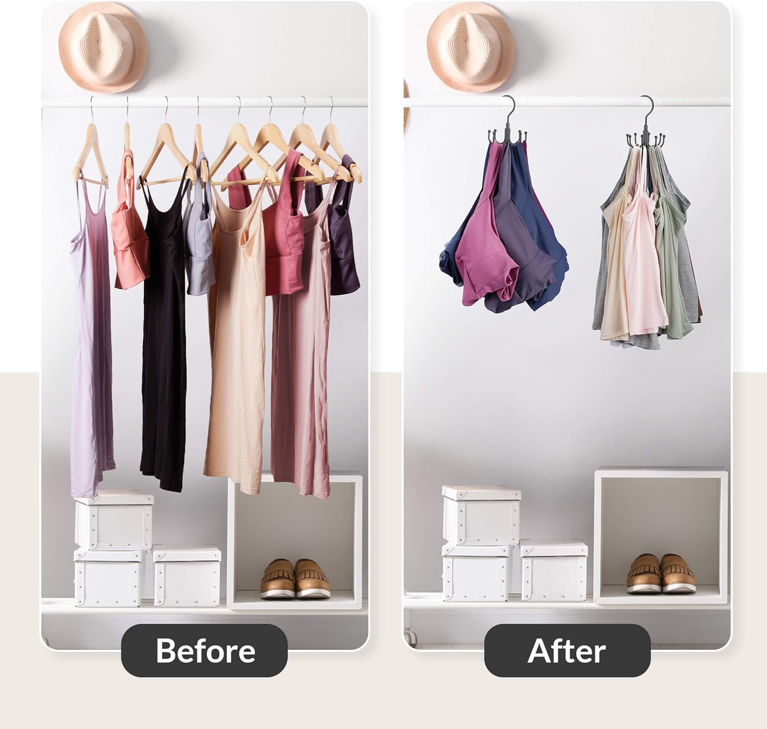 • Max 24 Capacity Tank Top & Bra Hanger: Our tank top and bra hanger features 8 hooks, each holding up to 3 bras or tank tops, for a total capacity of 24 items. This hanger is the perfect solution for organizing a large collection in a compact space.