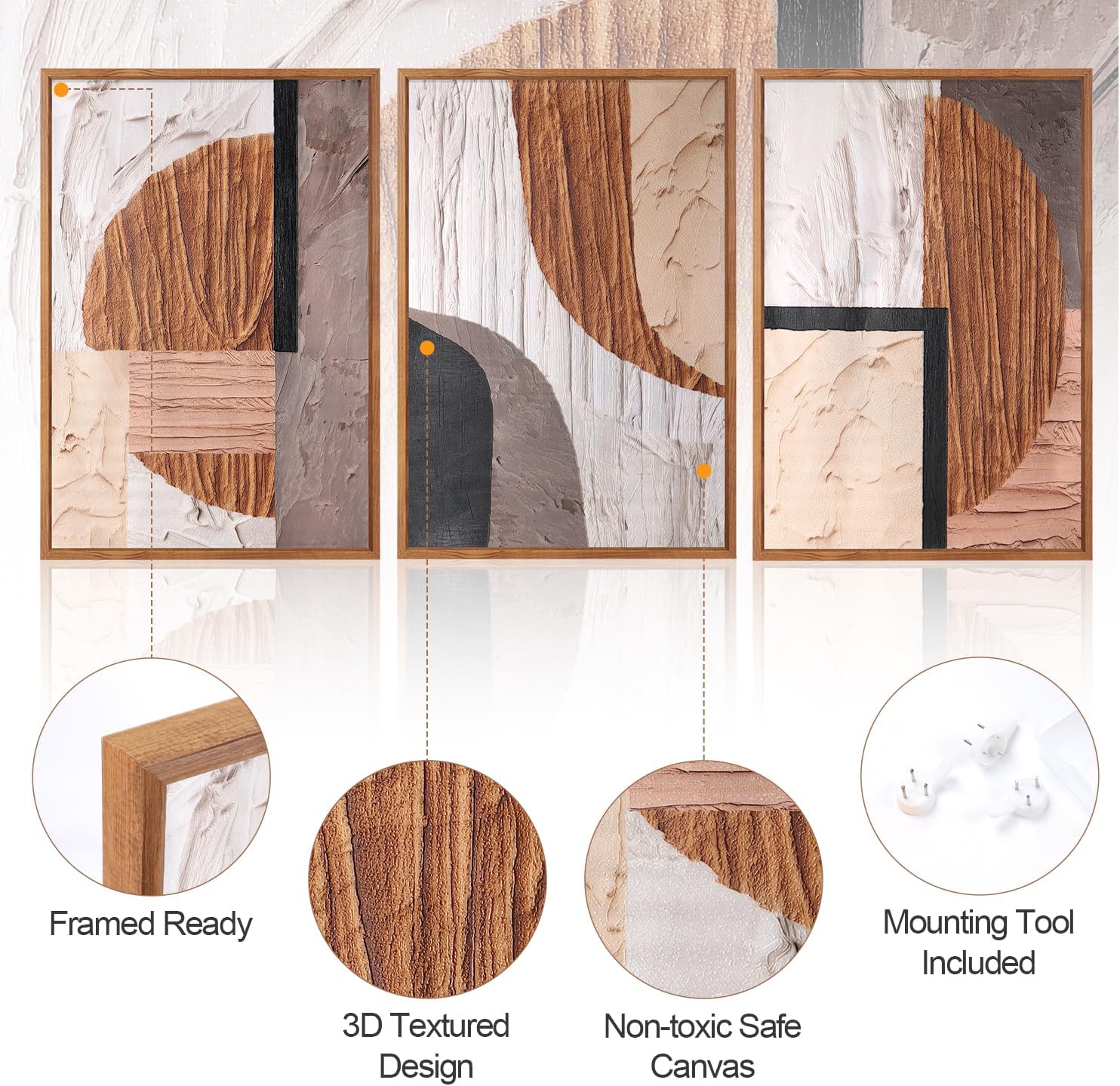 • 3D Textured Design-- The large boho framed canvas artwork is set of 3, each size is about 16"x24" and printed on non-toxic safe canvas. 3D textured UV printing makes it more realistic.