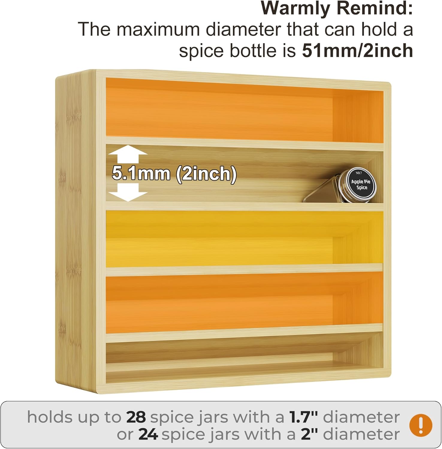 • Warmly Remind: The maximum diameter that can hold a spice bottle is 51mm/2inch.