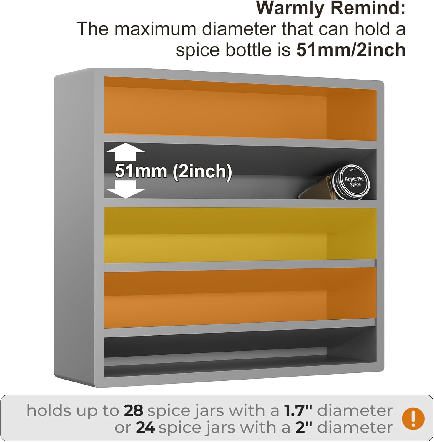 • Warmly Remind: The maximum diameter that can hold a spice bottle is 51mm/2inch.