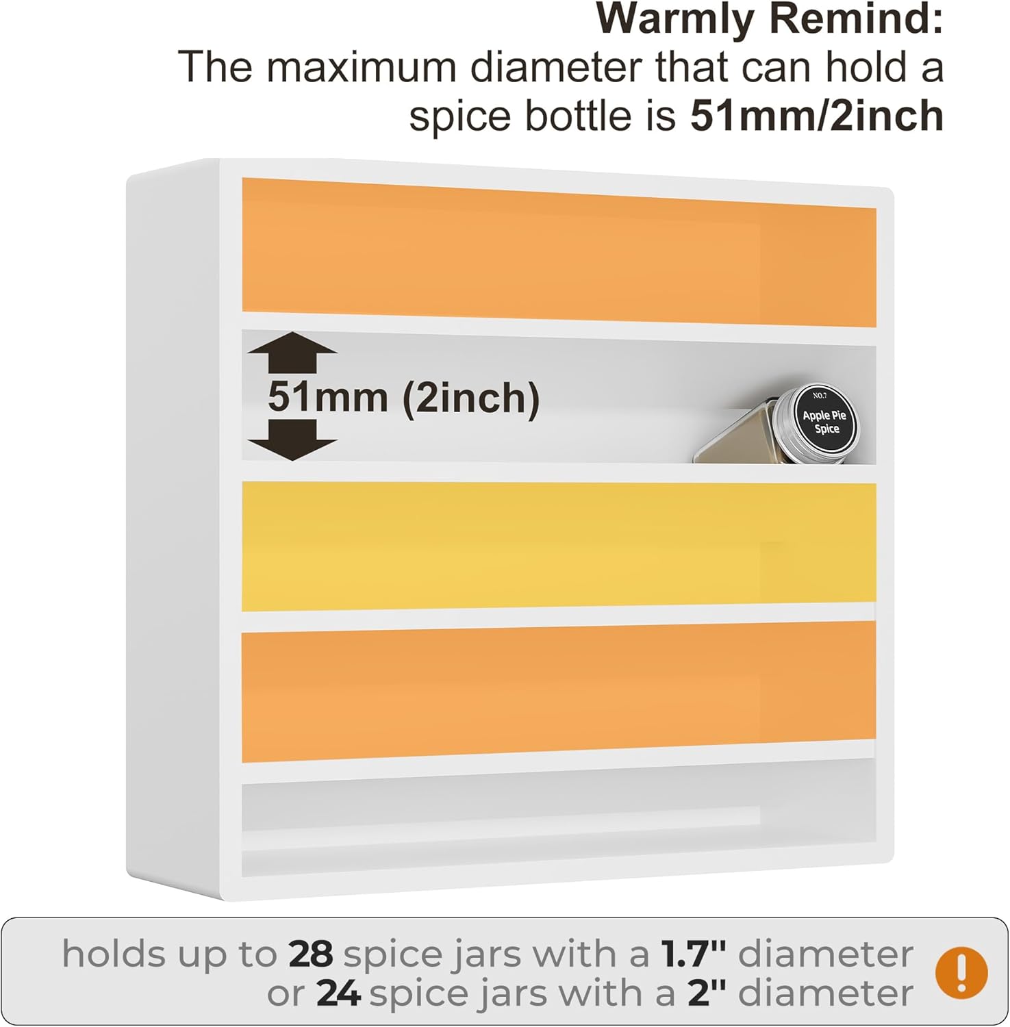 • Warmly Remind: The maximum diameter that can hold a spice bottle is 51mm/2inch.