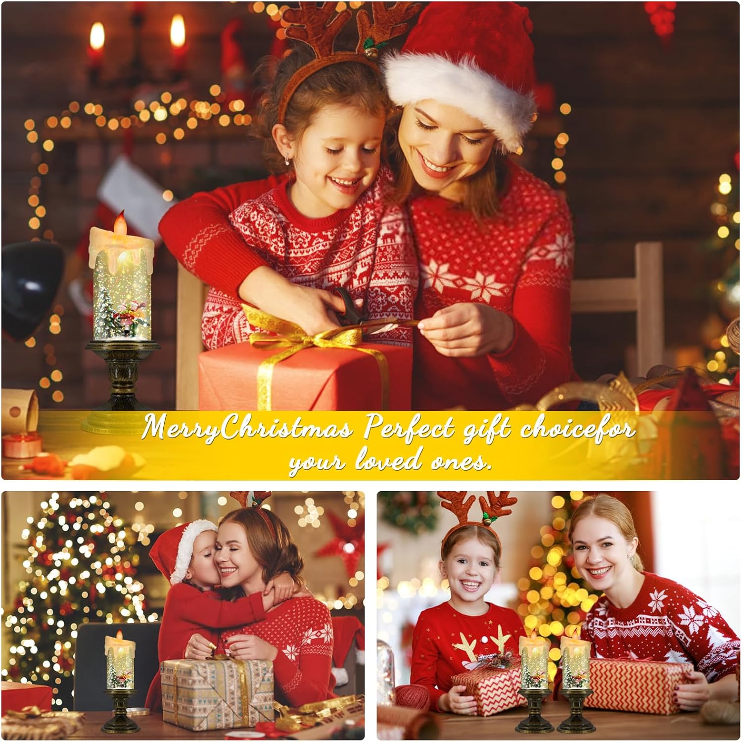 Christmas Flameless Candles, Flickering LED Candles with Timer, Snow Globe Candle Lights for Christmas Decorations