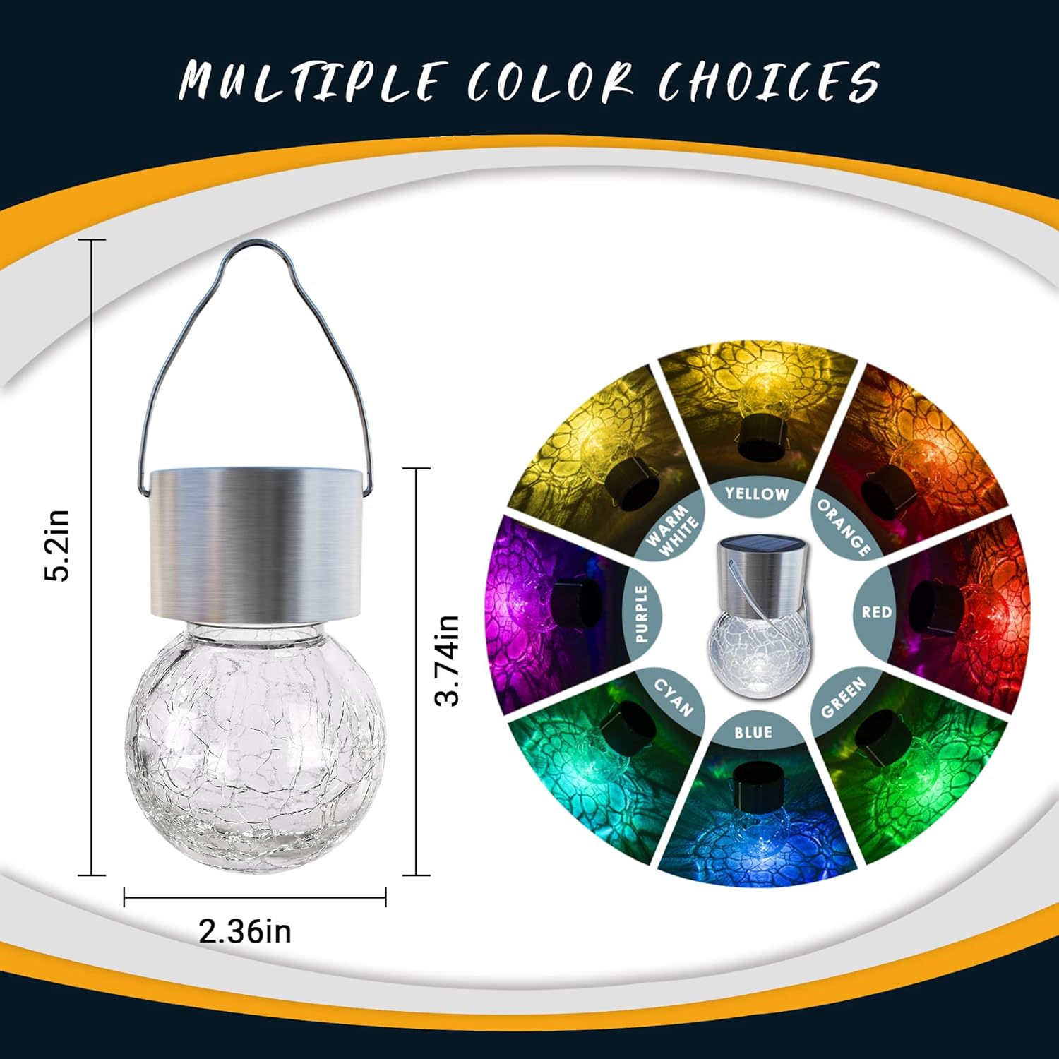 • 【Premium Material】Featuring a shimmering crackle glass globe, a sturdy stainless-steel hook and newest upgrade solar panel, adding a superior light effect to your garden