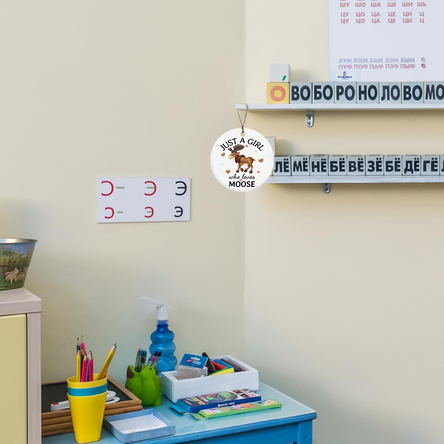 Christmas Moose Ornaments, Christmas Moose Gifts for Women, Moose Gifts for Moose Lovers, Just a Girl Who Loves Moose Ceramic Christmas Xmas Ornament Keepsake Decorations