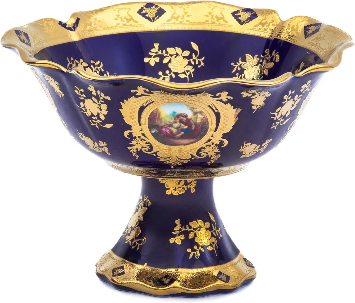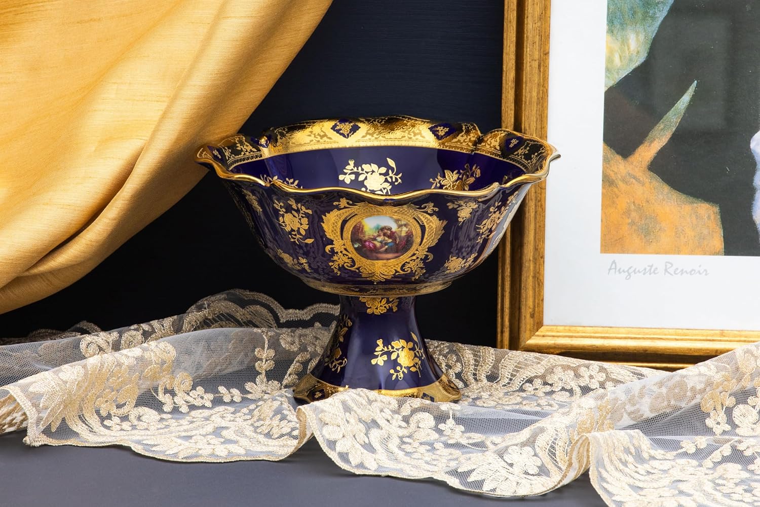 • Elegant Vintage Design: Perfectly crafted for your serving collection, the royalty porcelain blue fruit bowl on a stand (8 inch width x 6 inch height) adds a touch of vintage decor to any home, making it a stunning kitchen table centerpiece