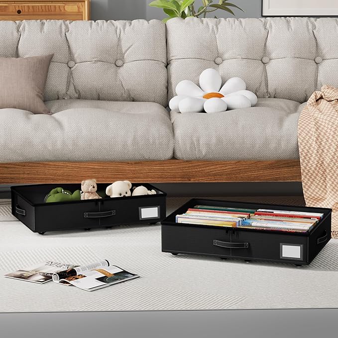 • [Lower Wheels Ensure Easy Access]: Each underbed storage bins is equipped with shorter wheels designed specifically to access lower beds. By keeping the bottom off the ground, you can effortlessly pull the storage bins in and out from under the bed, ensuring easy accessibility.