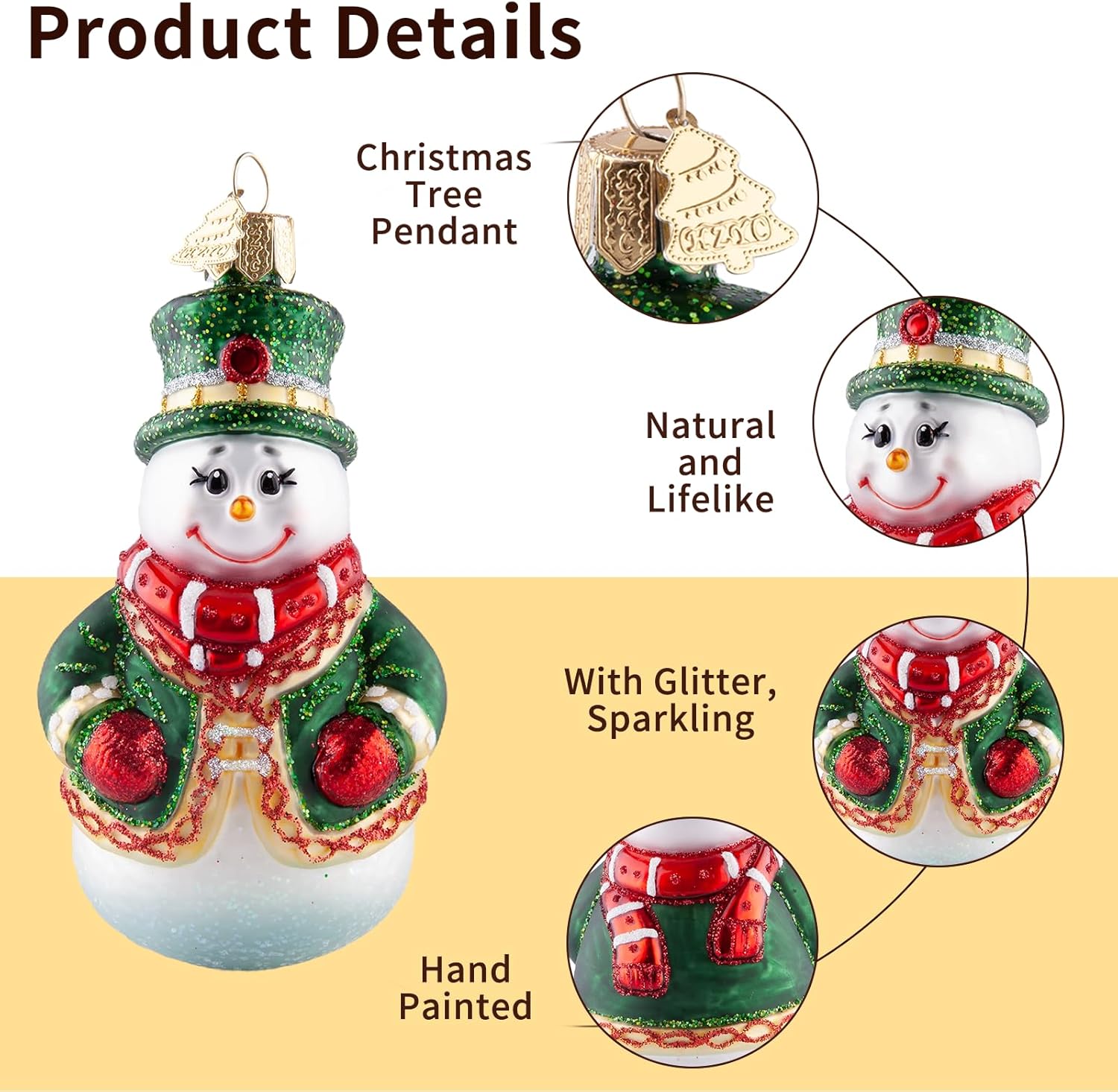 • Traditional Hand-Blown Glass: The Christmas ornaments originated from traditional art in the 19th century, where molten glass is blown into exquisitely carved molds and intricate details are hand drawn by skilled craftsmen. Every snowman is unique, making it a valuable and unique creative artwork