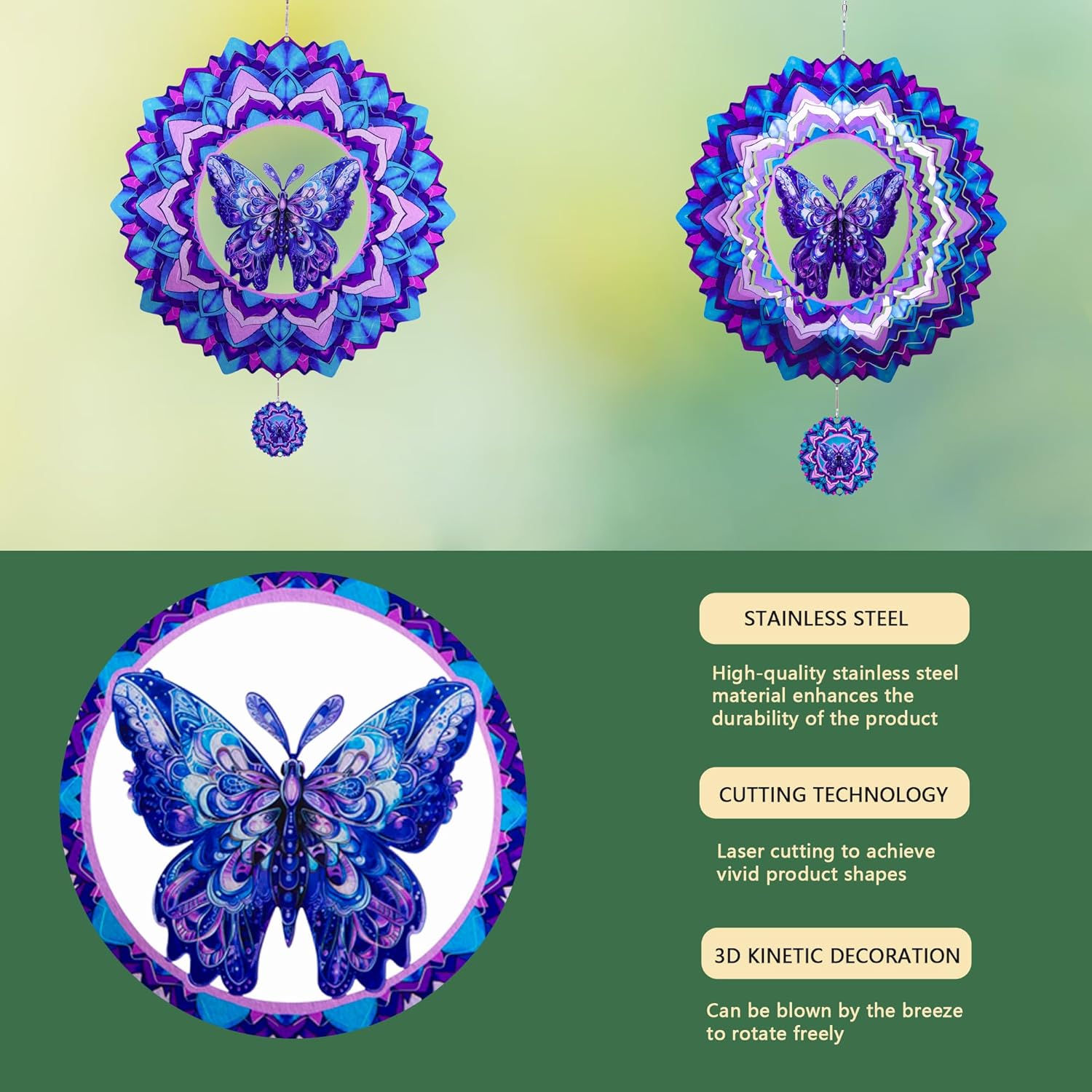 • 【Product introduction】: This 3D wind spinner is made of 12 inches and made of high-quality stainless steel. which adopts cutting technology and PUV printing to achieve a vivid butterfly shape.