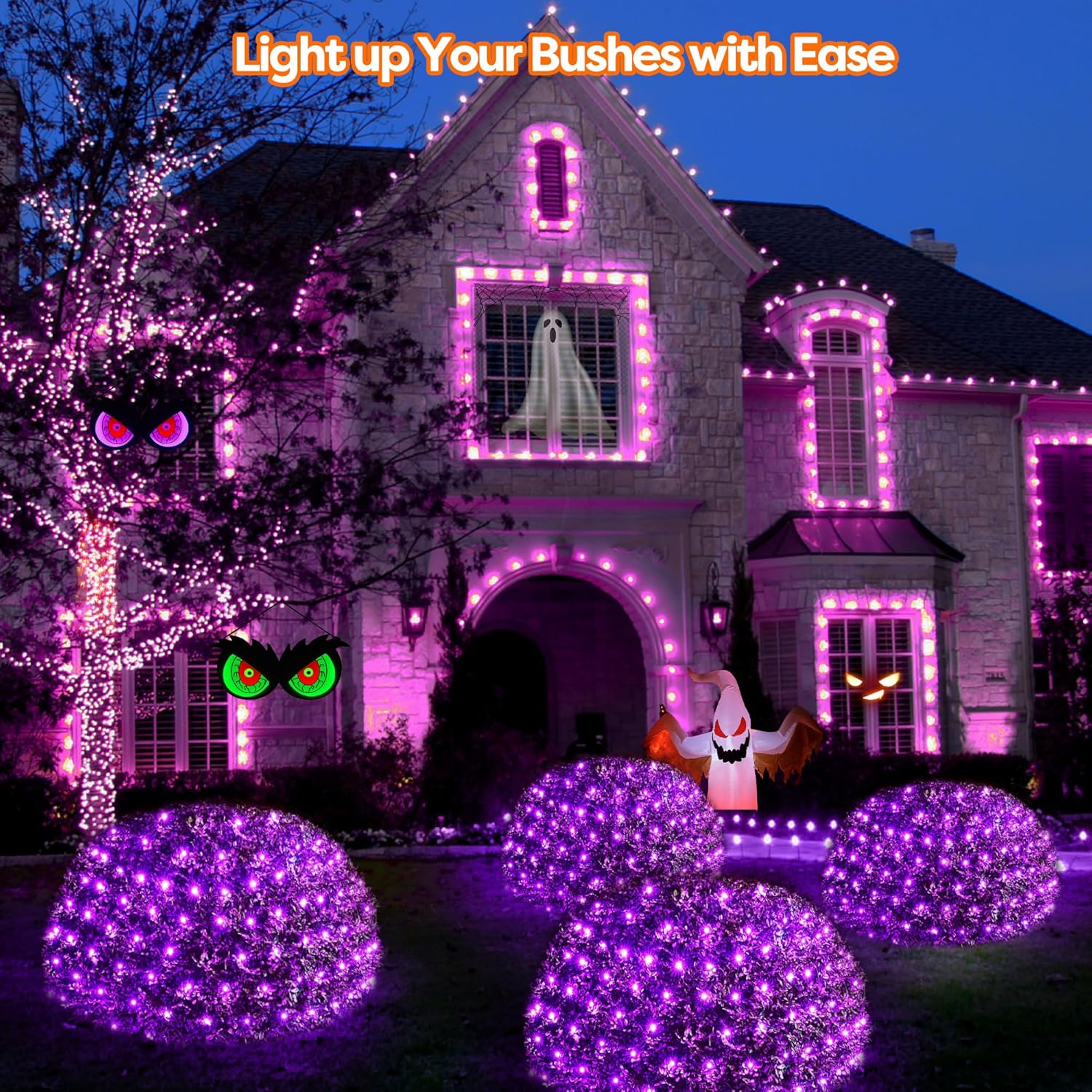 • Make Halloween Decoration Faster: Compared with traditional single string lights, our solar mesh purple string lights can greatly save our Halloween decoration time. Just unfold it gently and spread it on the bushes, grass, trees, and fences that need to be decorated, it's done! Without a lot of circles like a single string light.
