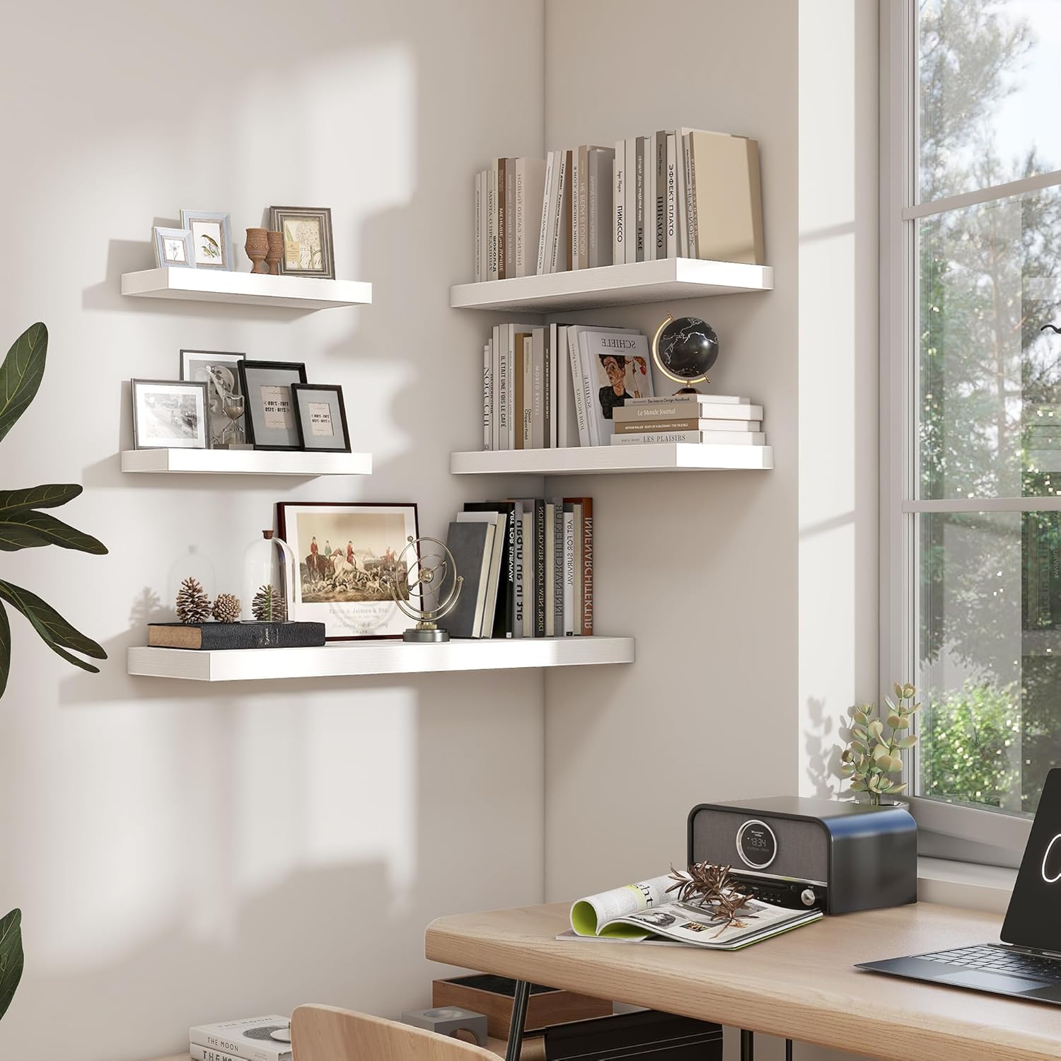 • 【Easy to install and clean】Our white wall floating shelves come with detailed installation instructions and can be installed quickly in 5 minutes-users can easily complete the installation without professional skills. The white floating shelf has a smooth surface, is durable, and is easy to clean. Just wipe it gently with a damp cloth to keep it clean.